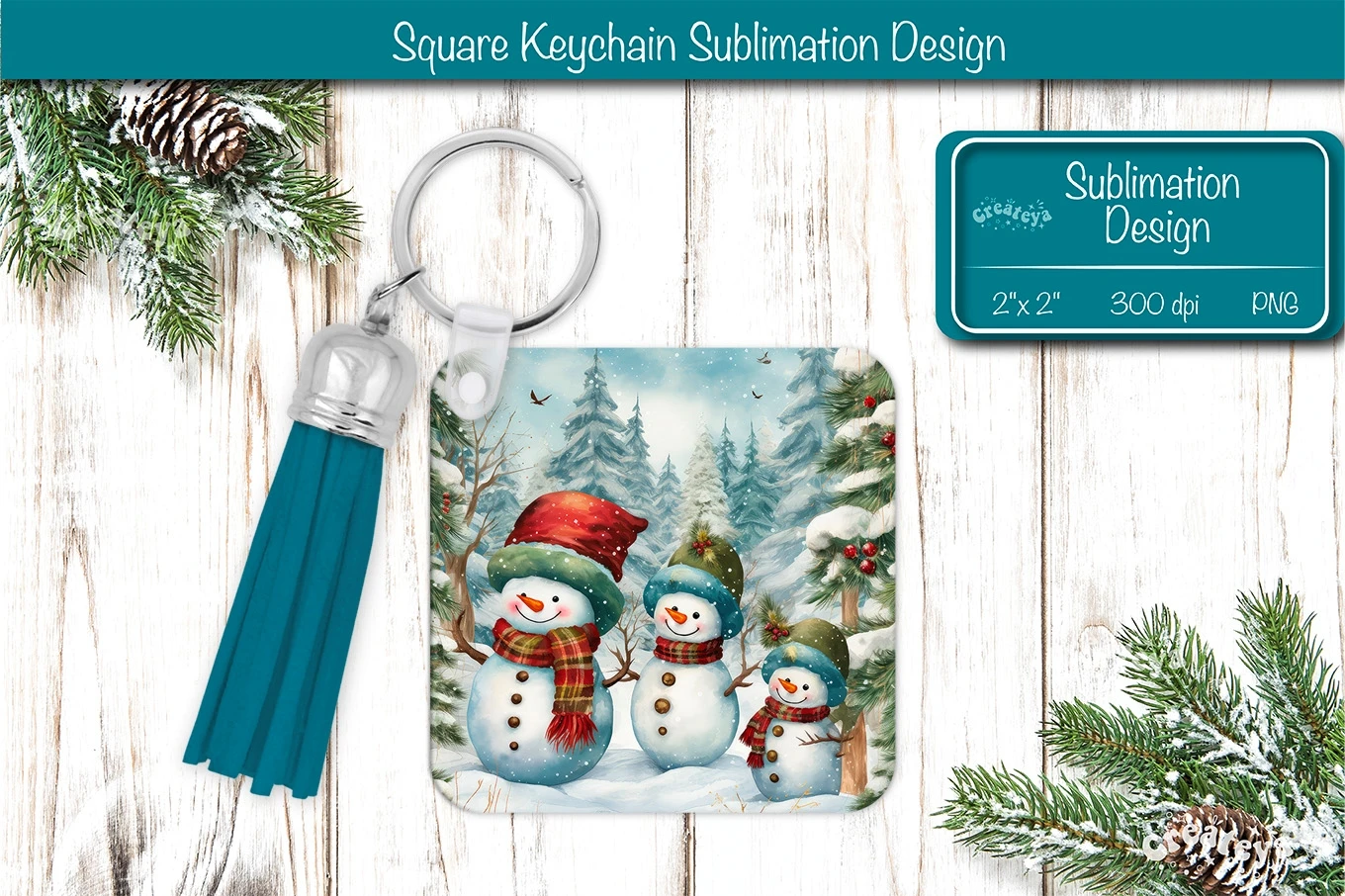 Square keychain sublimation Christmas keychain sublimation design with a cute Watercolor Snowman Keychain PNG. Christmas Sublimation Square keychain with adorable snowman, vibrant colors, and lasting memories. Perfect as a delightful gift.