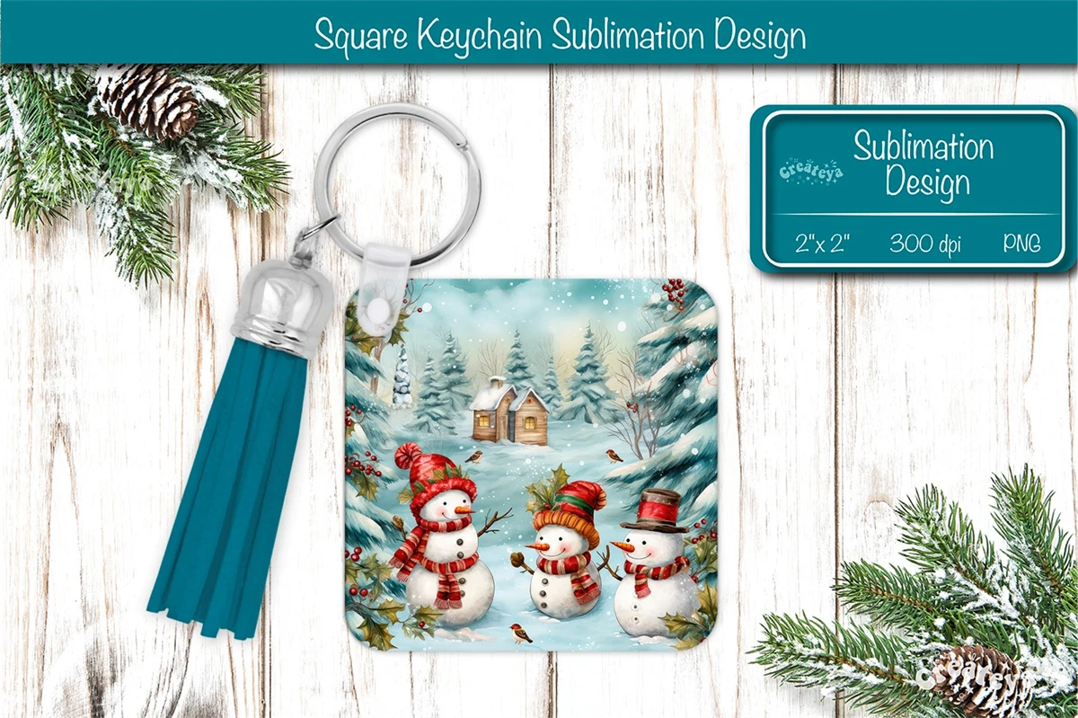 Square keychain sublimation Christmas keychain sublimation design with a cute Watercolor Snowman Keychain PNG. Christmas Sublimation Square keychain with adorable snowman, vibrant colors, and lasting memories. Perfect as a delightful gift.