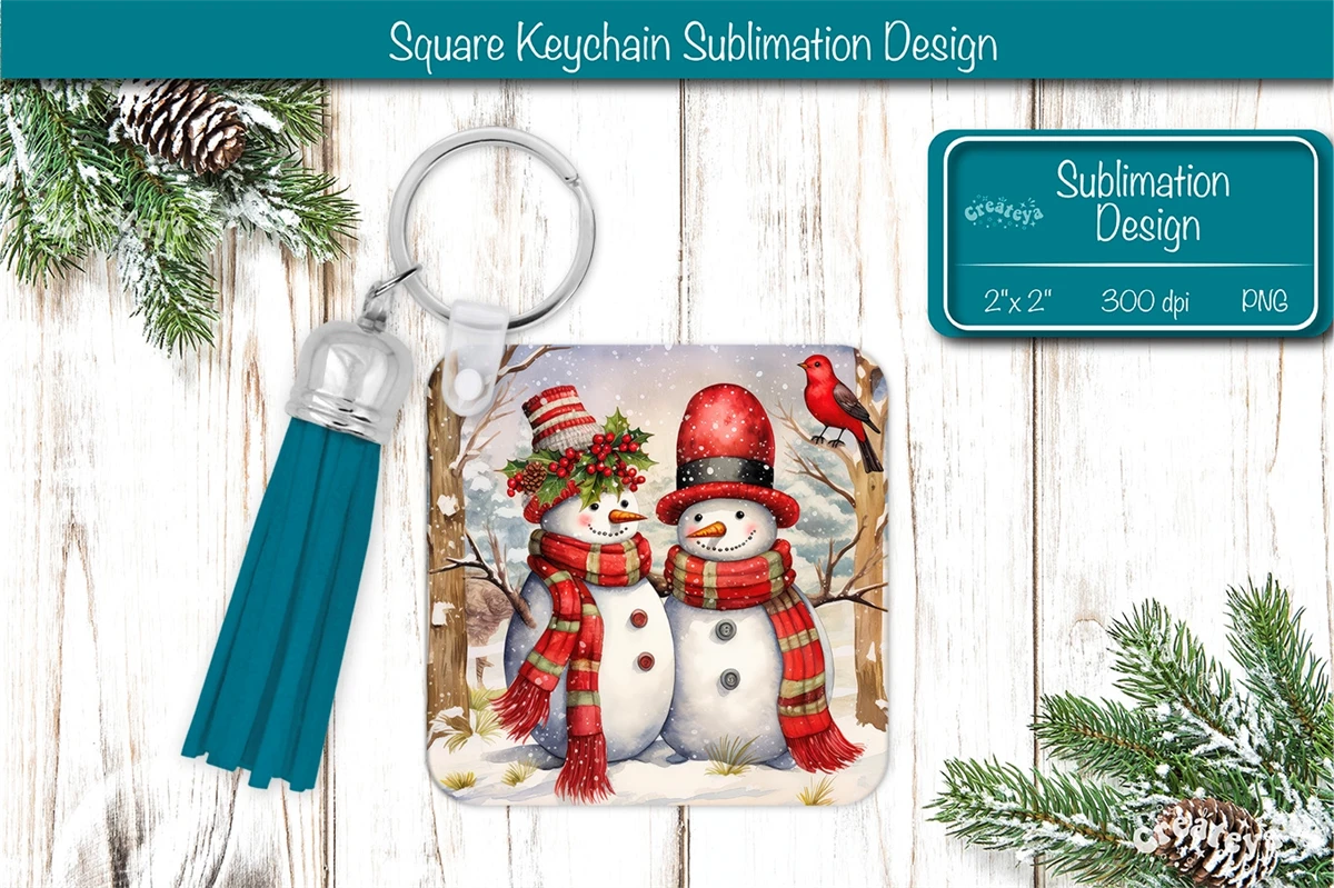 Square keychain sublimation Christmas keychain sublimation design with a cute Watercolor Snowman Keychain PNG. Christmas Sublimation Square keychain with adorable snowman, vibrant colors, and lasting memories. Perfect as a delightful gift.