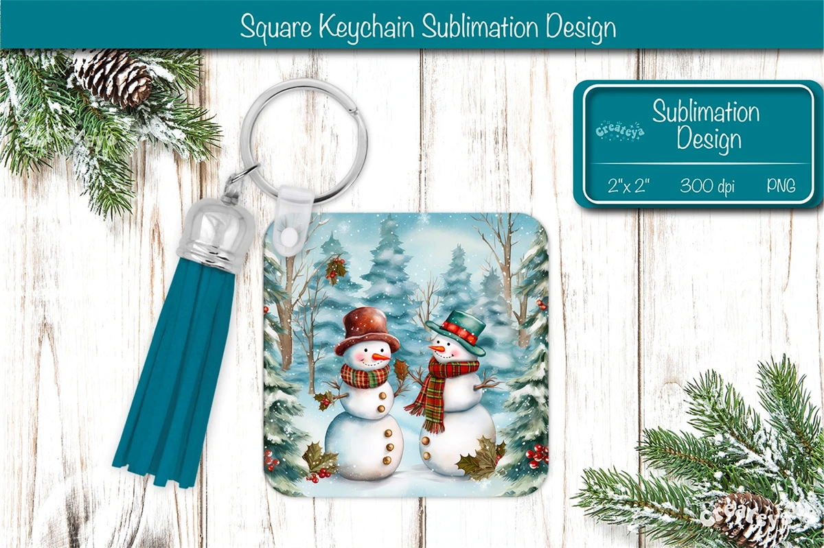 Square keychain sublimation Christmas keychain sublimation design with a cute Watercolor Snowman Keychain PNG. Christmas Sublimation Square keychain with adorable snowman, vibrant colors, and lasting memories. Perfect as a delightful gift.