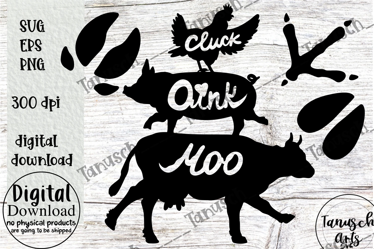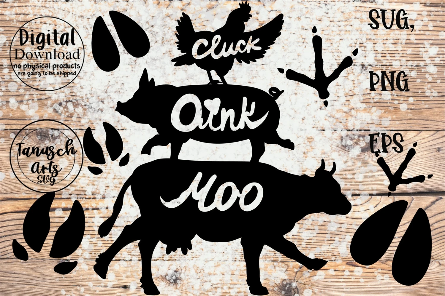Hand painted smiling cute stacked farm animals SVG Bundle- design plus foot prints