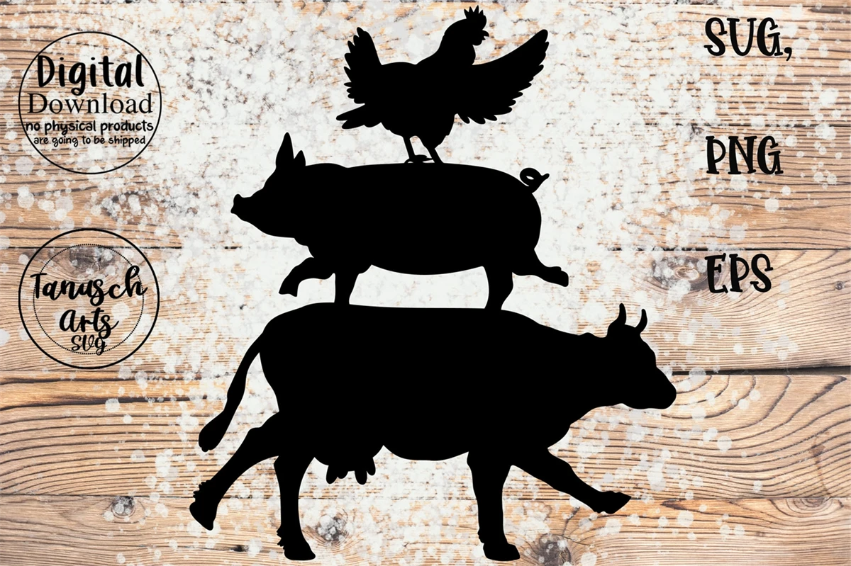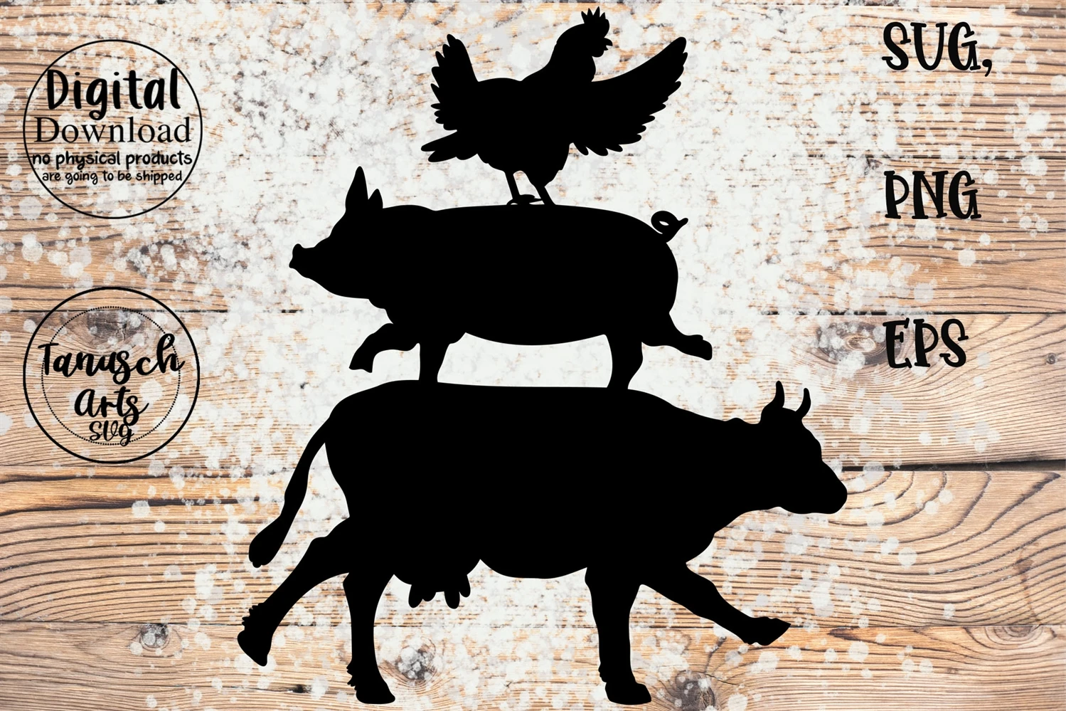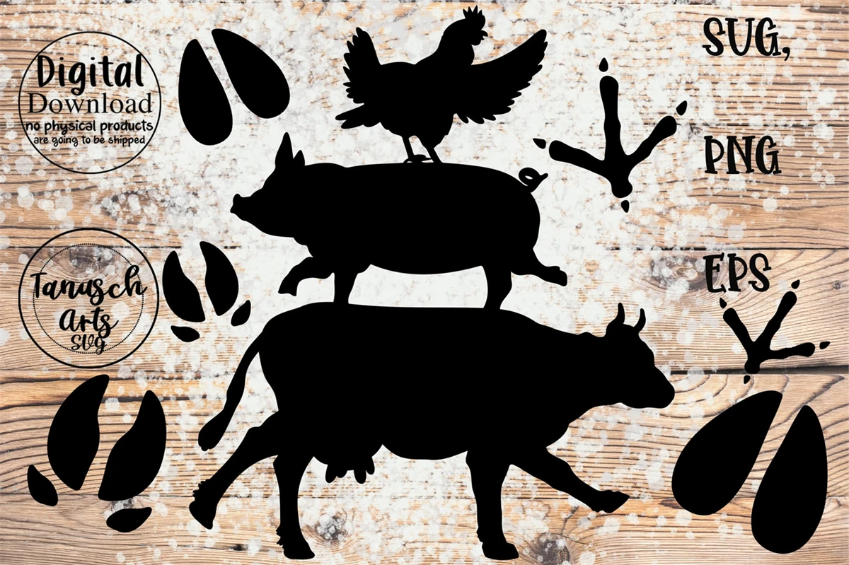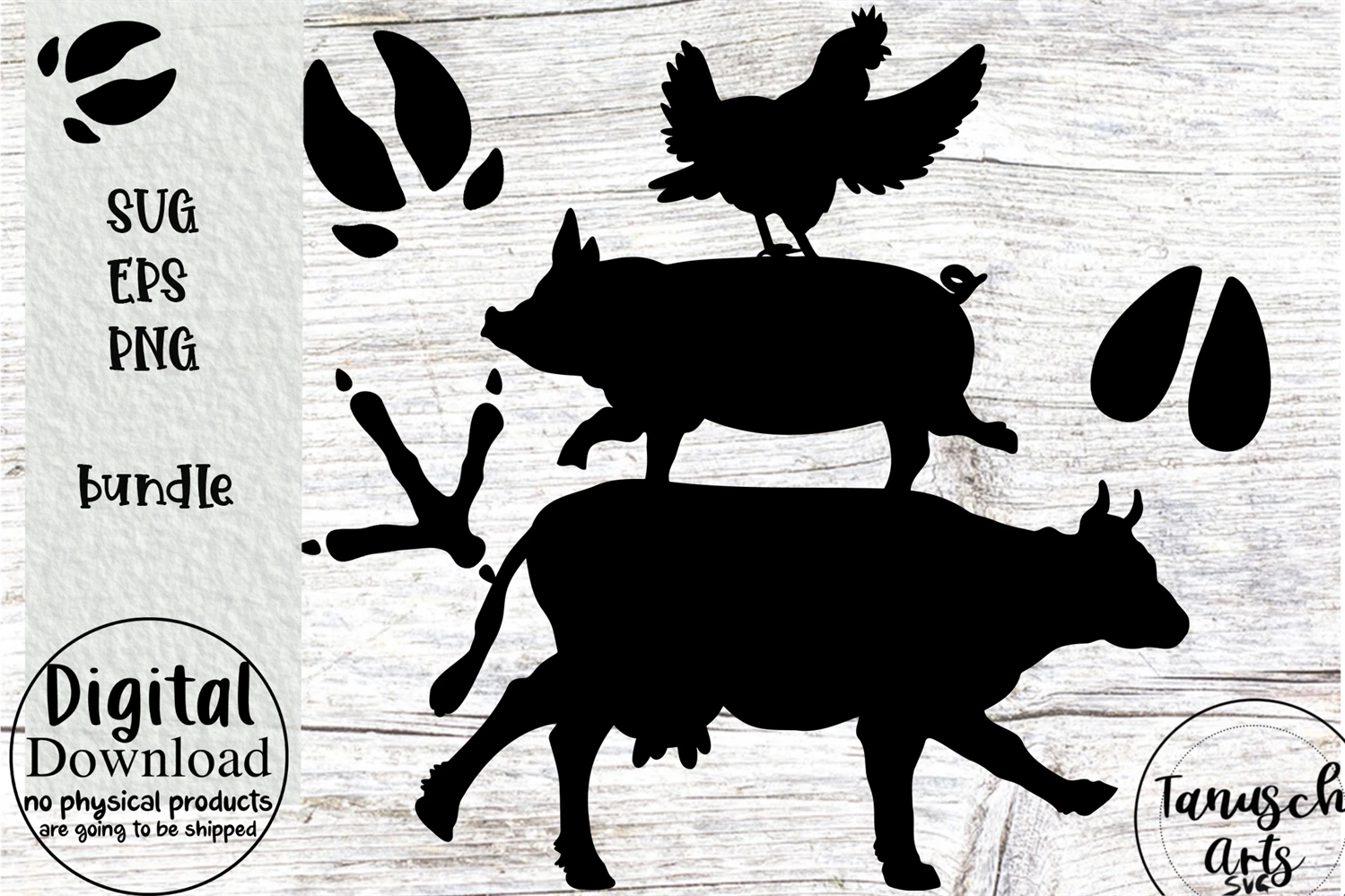 Hand painted smiling cute stacked farm animals SVG Bundle- design plus foot prints