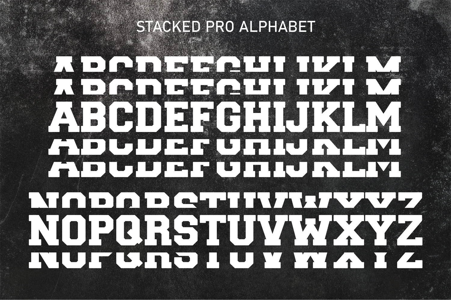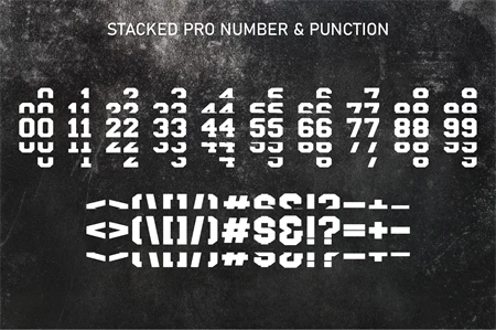 Stacked Pro is a sport-stacked style. Easy to create design sport shirt name team, logo, head title. This font is PUA encoded which means you can access all of the amazing glyphs and ligatures with ease!