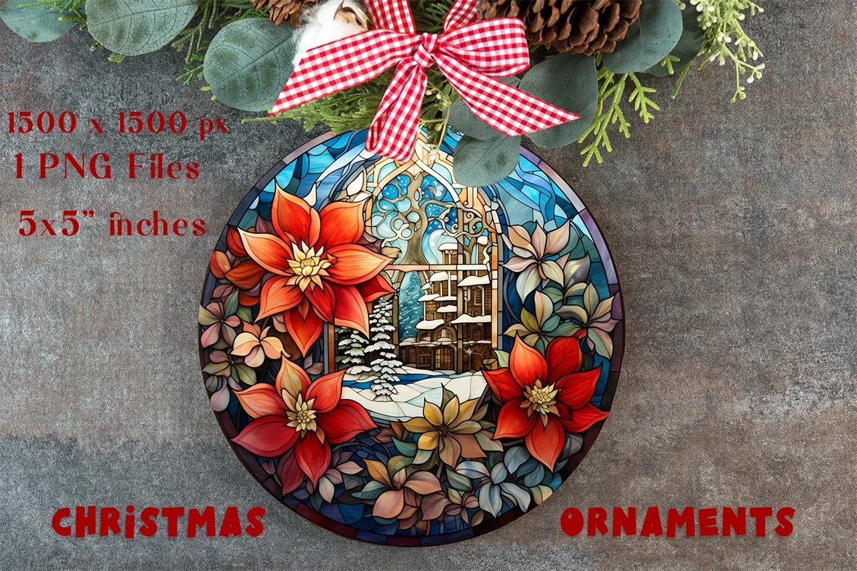 Hello everyone, these Christmas Ornament Sublimation. Christmas Stained Glass. Christmas Round Ornament. Christmas Png.