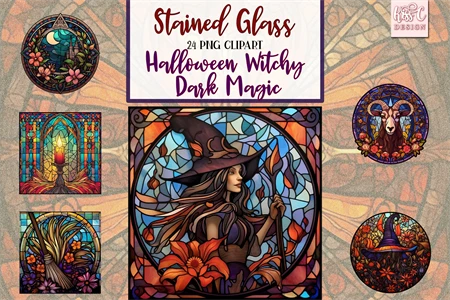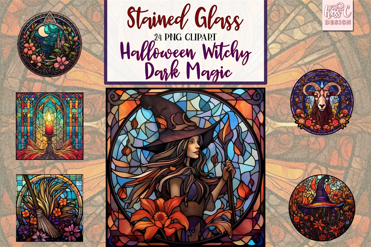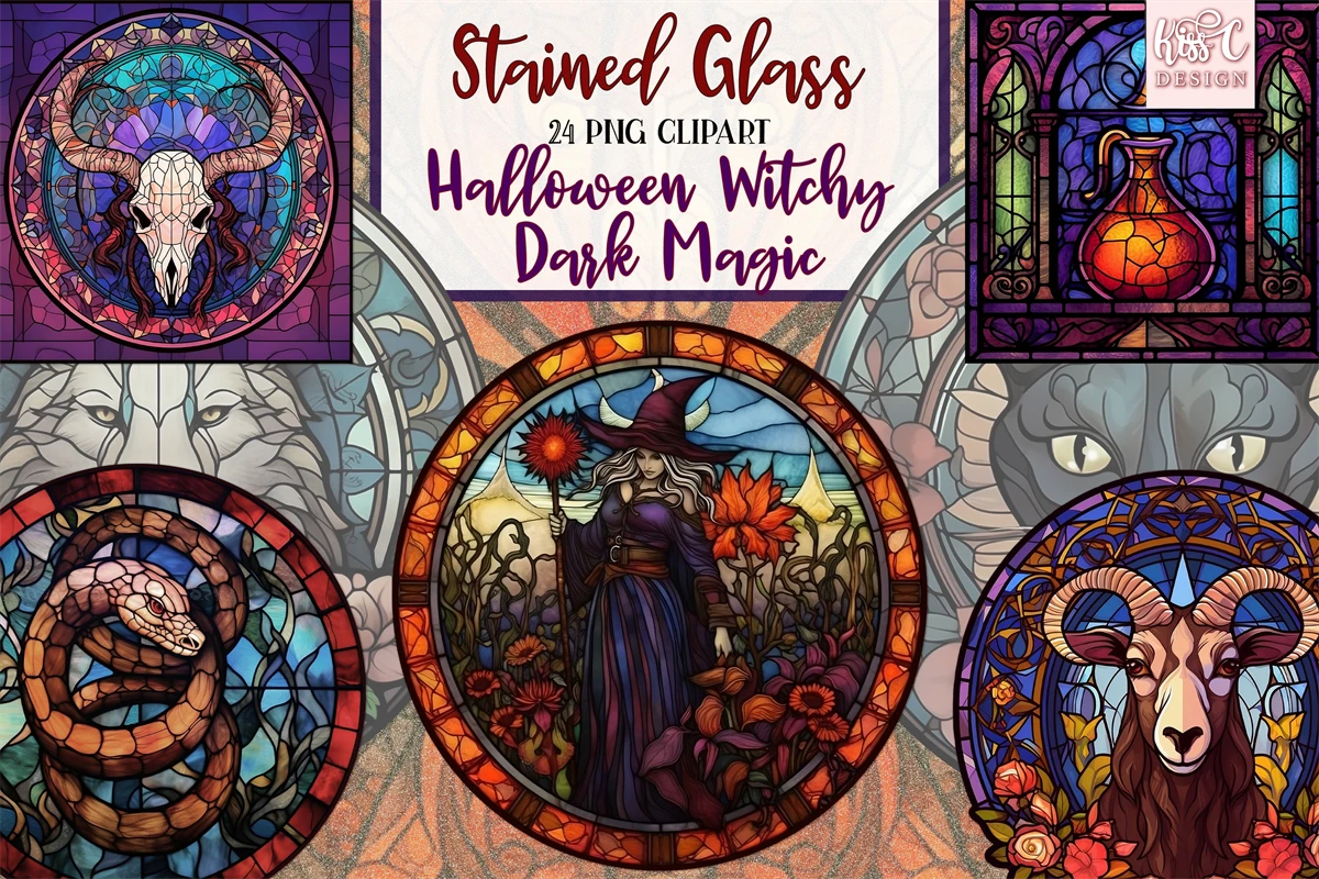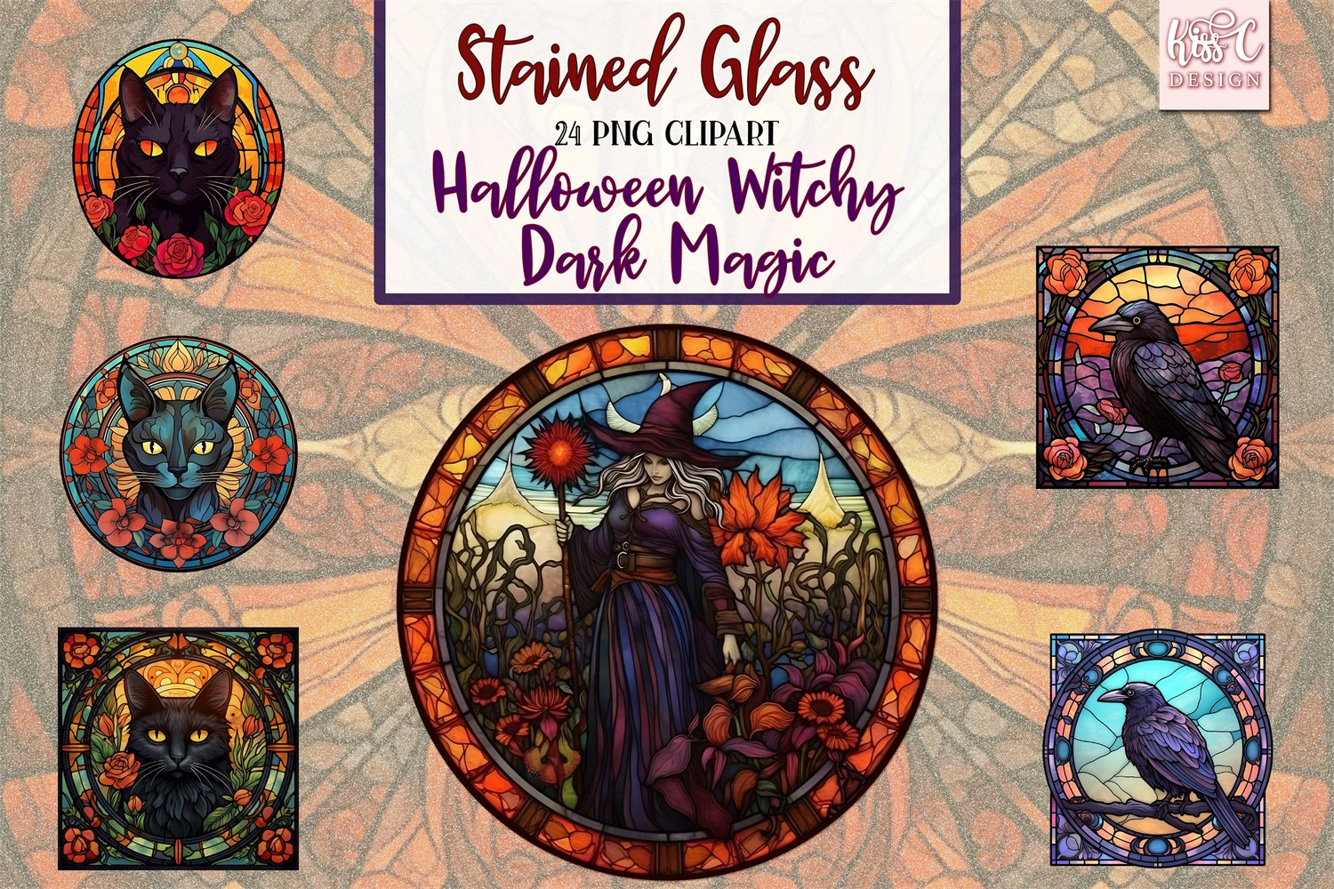 Stained Glass Halloween Witchy Dark Magic Clipart