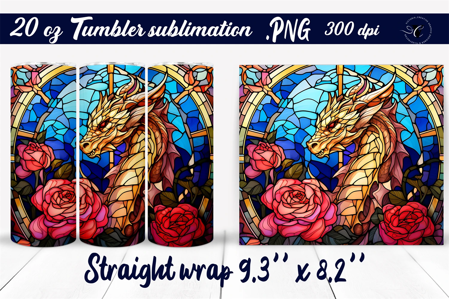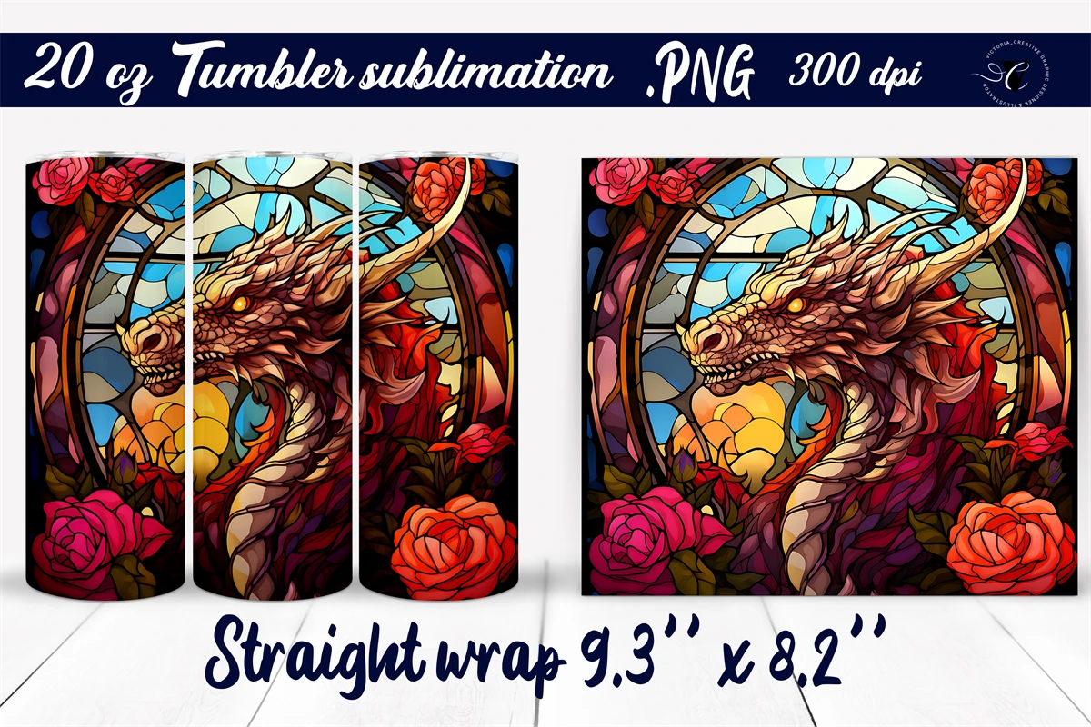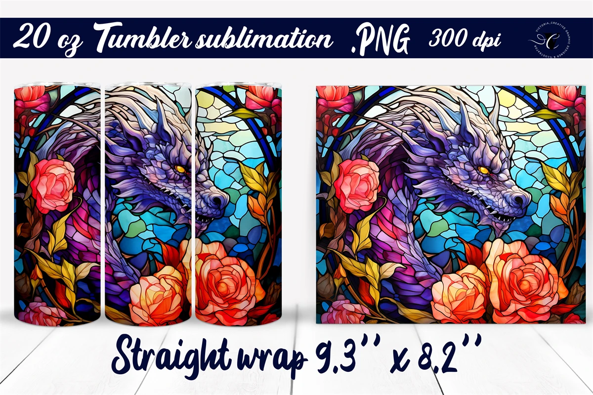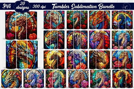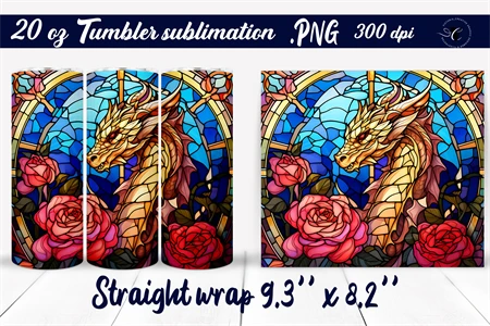 Stained glass tumbler wrap bundle with Dragons and flowers, Tumbler wrap sublimation bundle