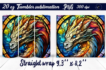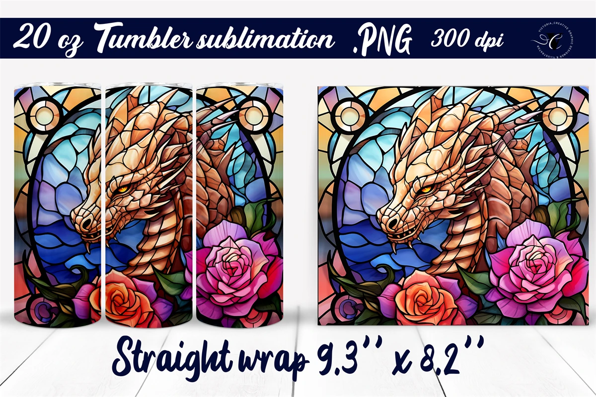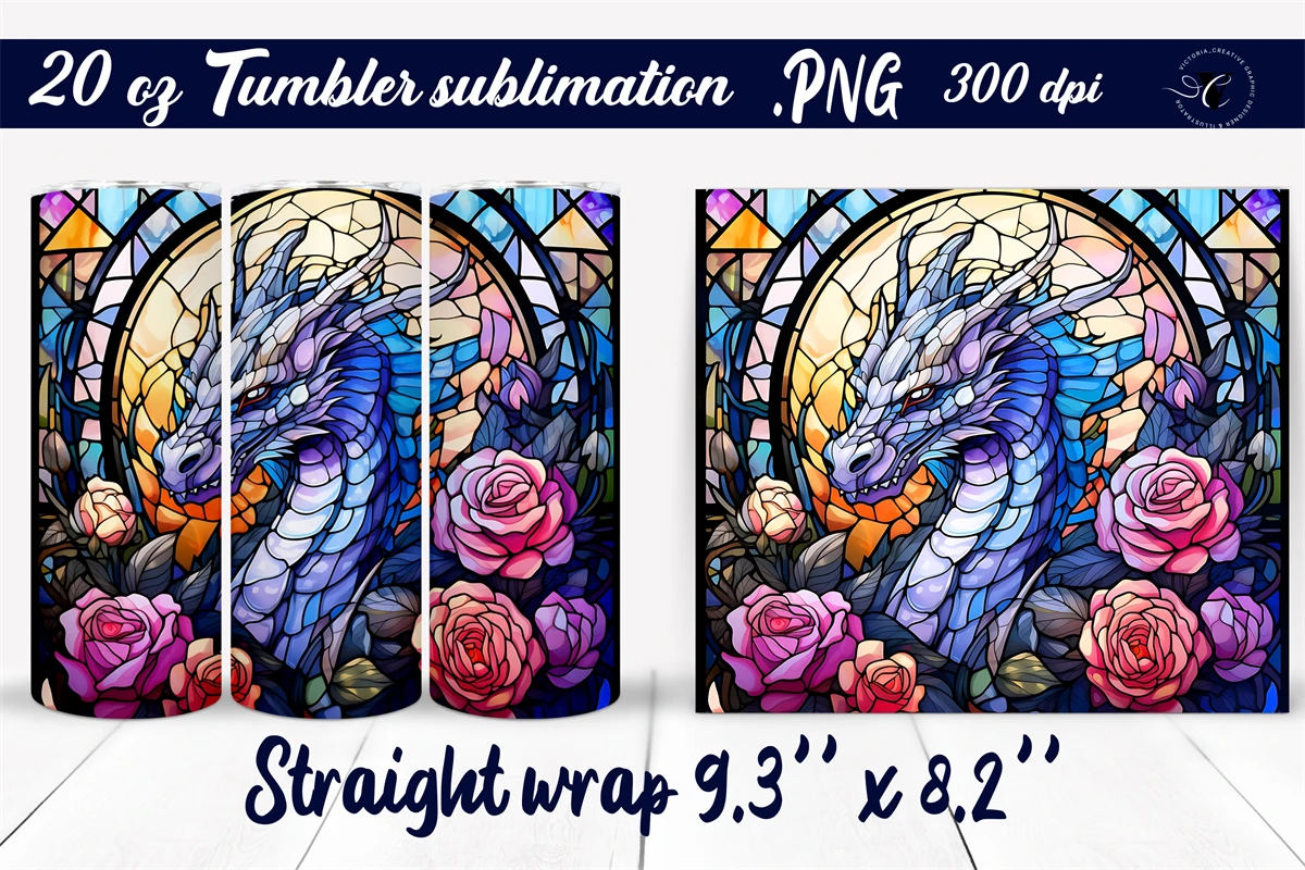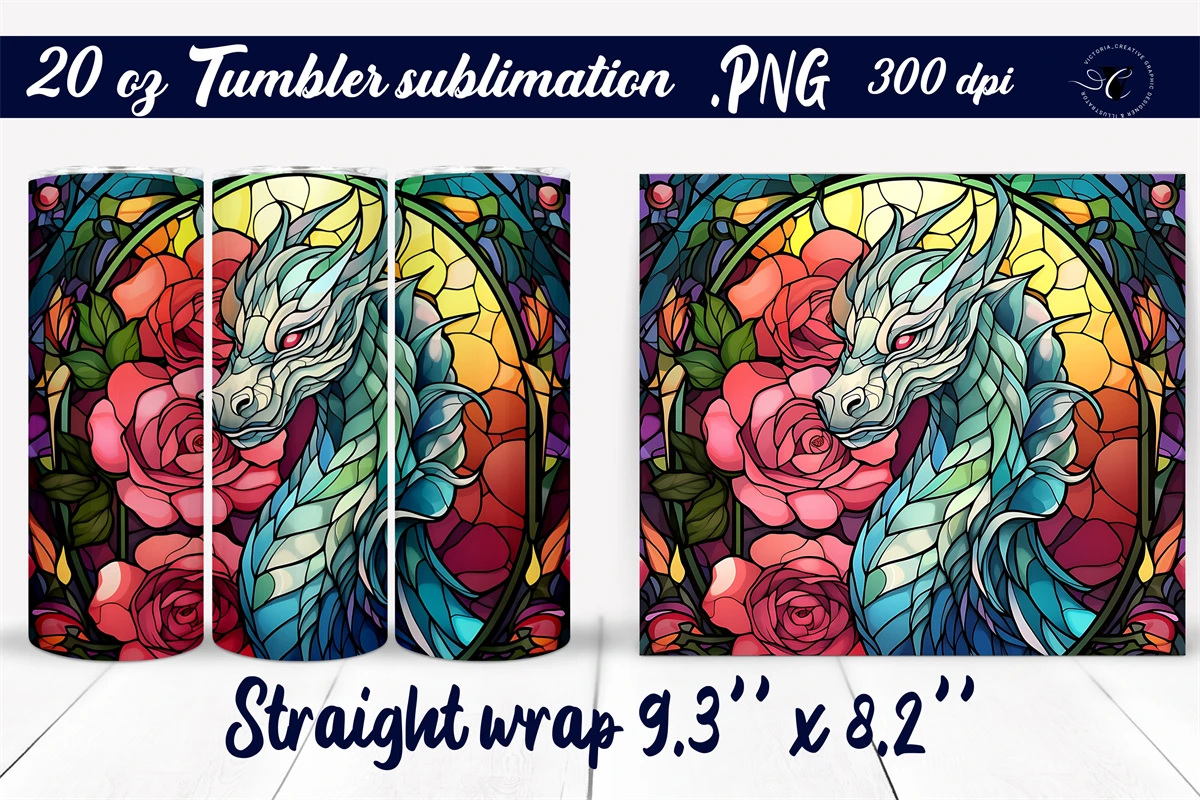 Stained glass tumbler wrap bundle with Dragons and flowers, Tumbler wrap sublimation bundle