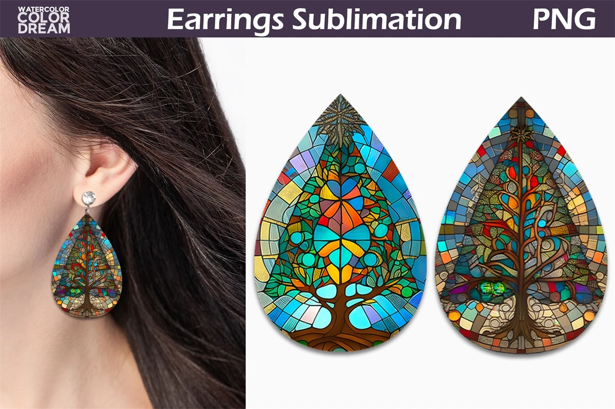 Stained Glass Teardrop Earrings. Christmas Tree Earrings - 3 sizes