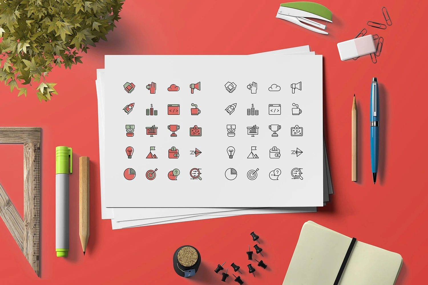 Don't miss it Start up - Icons This professional Icons pack, high quality, for professional designers, easy to use, fully editable & customizable in Adobe Illustrator