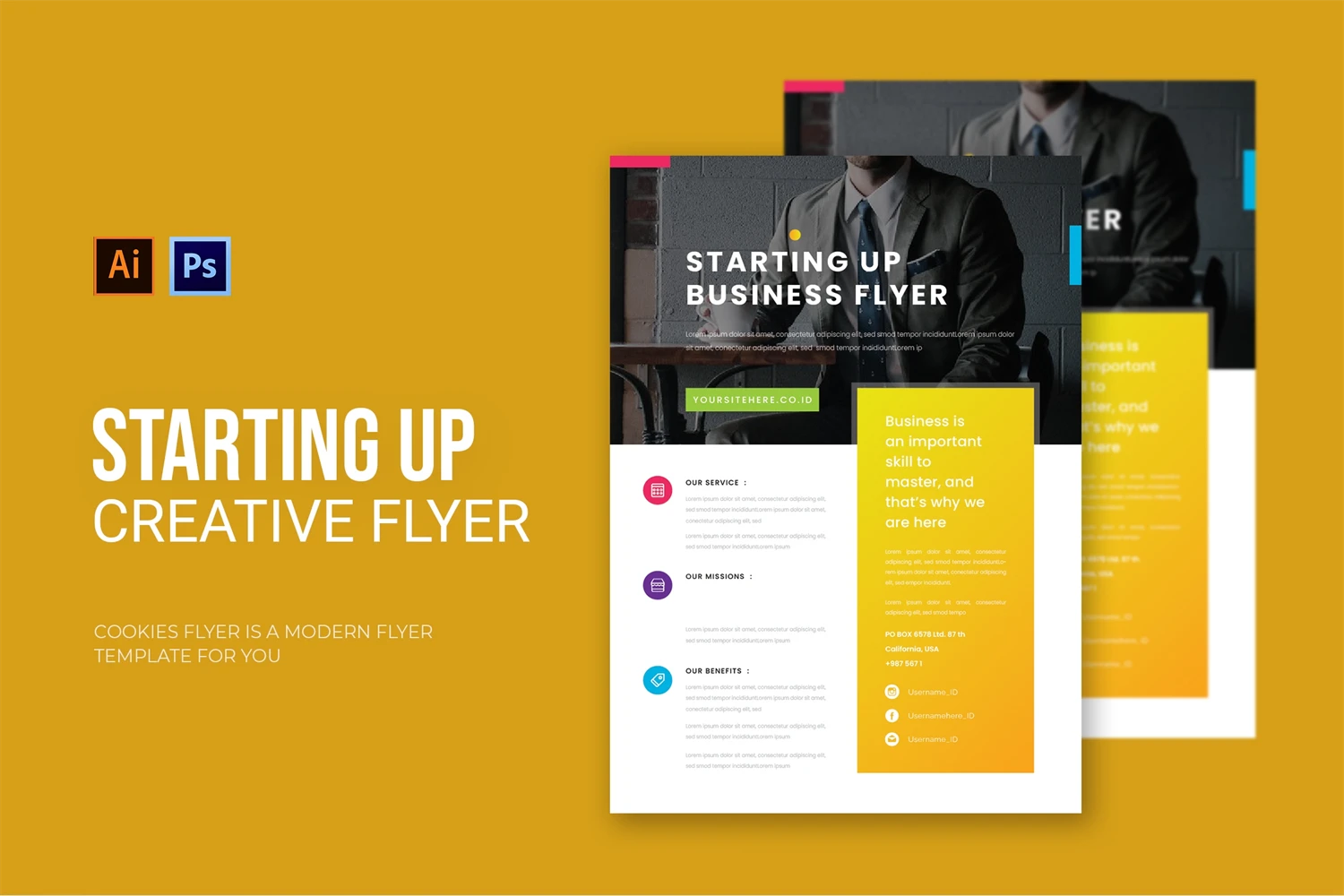Starting Up - Flyer. This Flyer template is designed for your company's business needs. very clean and elegant, and also easily edited and adjusted to your liking
