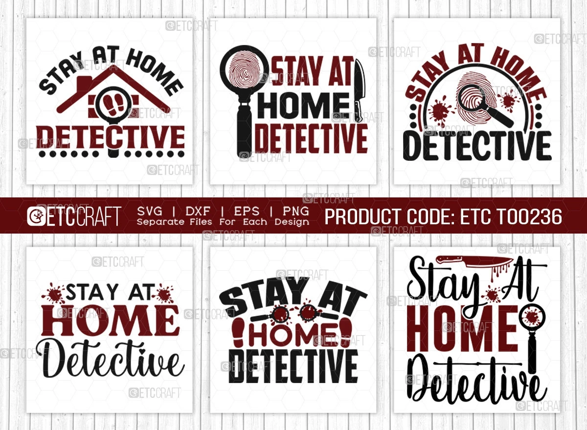 Whether you're creating DIY projects, personalized gifts, or customized apparel, our Stay At Home Detective SVG Bundle offers endless creative possibilities. Use the designs on t-shirts, mugs, tote bags, home decor, and more to showcase your passion for crime investigation.