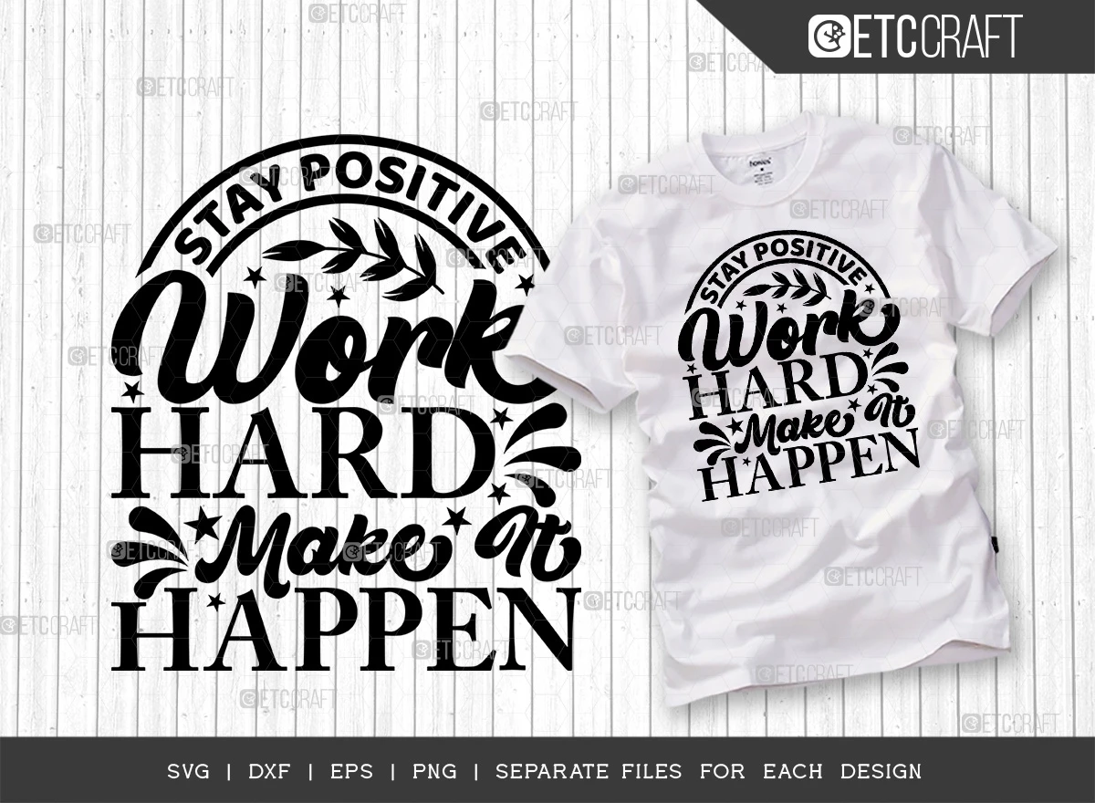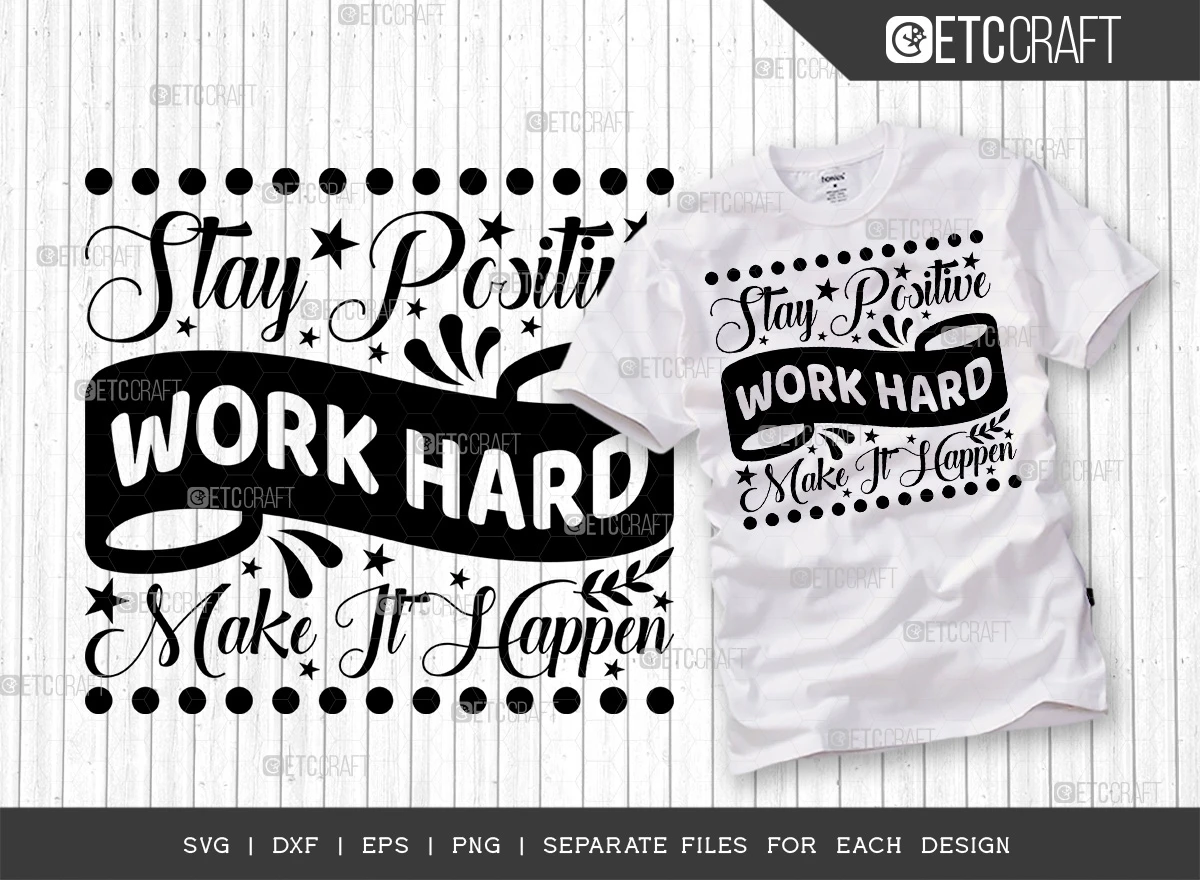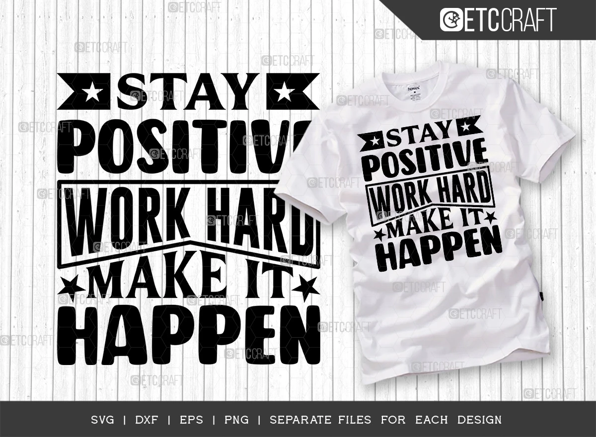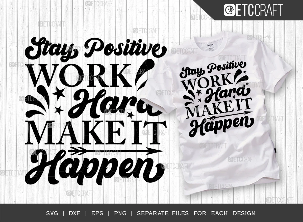The Stay Positive Work Hard Make It Happen SVG Bundle can be used to create a variety of projects, including:
