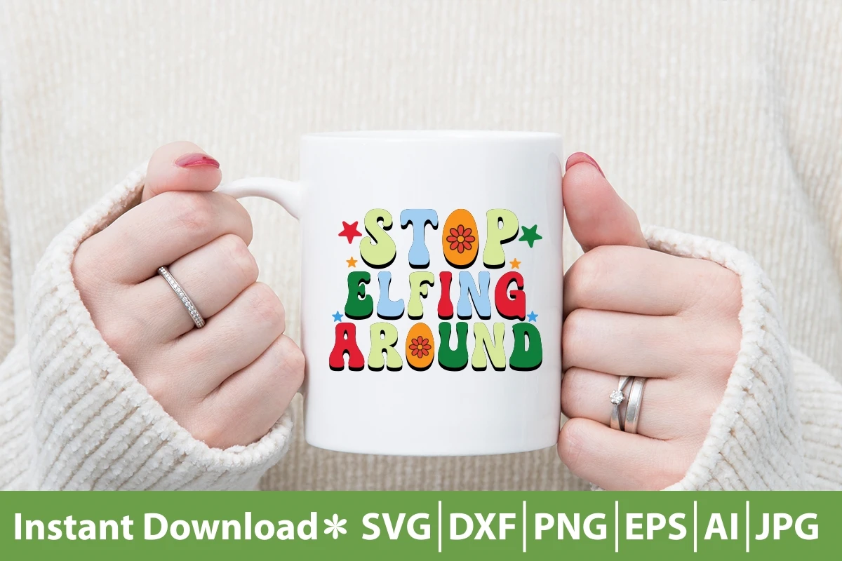 Stop Elfing Around SVG Cut file design, Christmas SVG