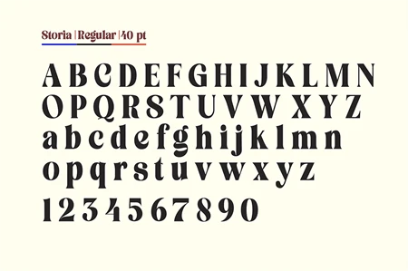 he Storia Lettering Serif style is absolutely perfect for editorial headings. The full font type upright and italic makes it easy for you to use the 2 styles in many projects. This font is complete with symbols and is multilingual. This font style is bold, bold, and sleek, featuring Swash,n Ligature and Stylistic Alt & Stylistic Set features. making it perfect for editorial, web, posters, t-shirts and magazine covers. . etc.