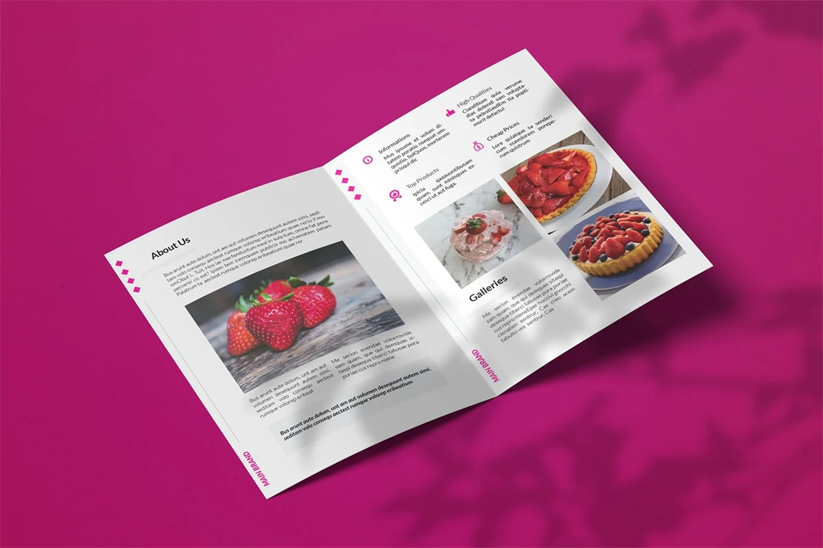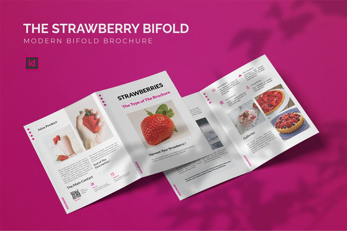 Strawberries - Bifold Brochure We present this Bifold Brochure for you, simple and very elegant, and this Bifold Brochure is suitable for all types of your business, made with adobe inDesign, very easy to customize, Hope you Like it, dont forget to rate, Thanks.