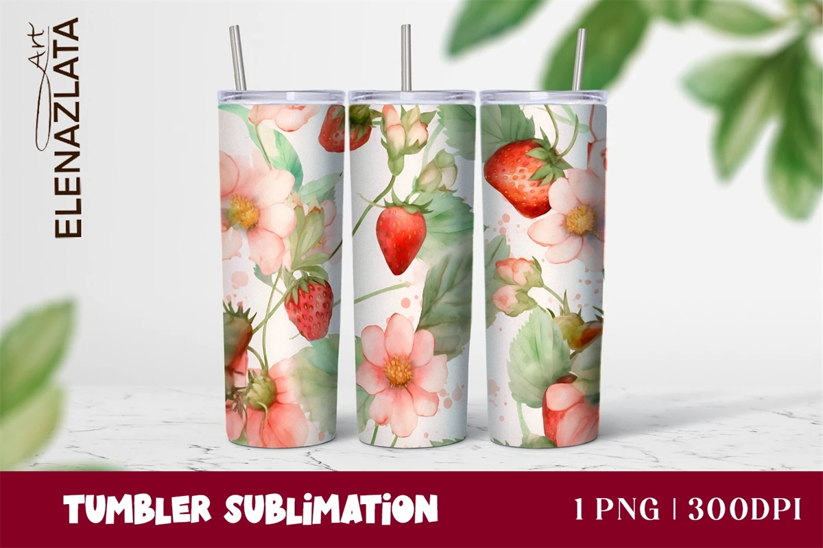 20oz Tumbler watercolor strawberry and glitter Sublimation
