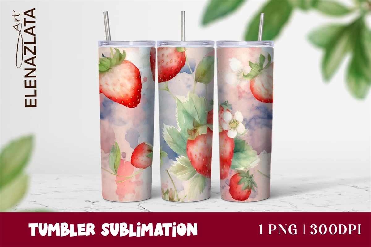 20oz Tumbler watercolor strawberry and glitter Sublimation