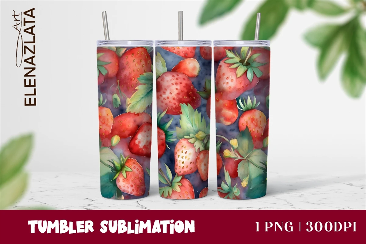 20oz Tumbler watercolor strawberry and glitter Sublimation