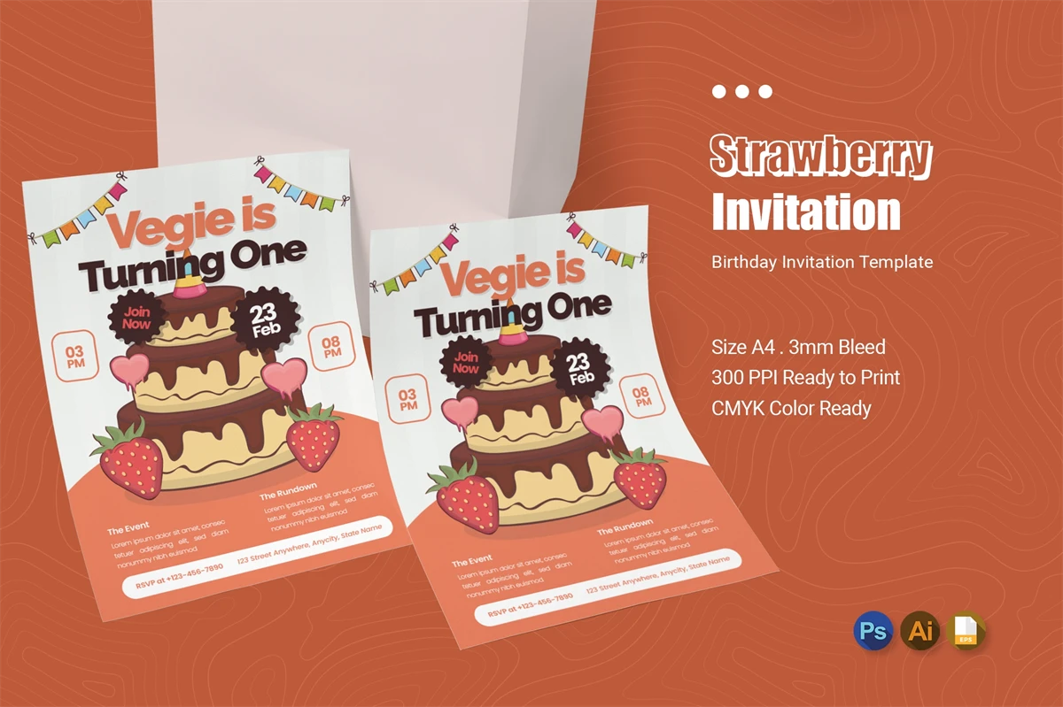 Of course you want to invite friends to your birthday party with the best invitations! Impress the invited guests with your style of invitation, by using this invitation card template. You can easily edit & customize each of the designs because every component is well organized and editable.