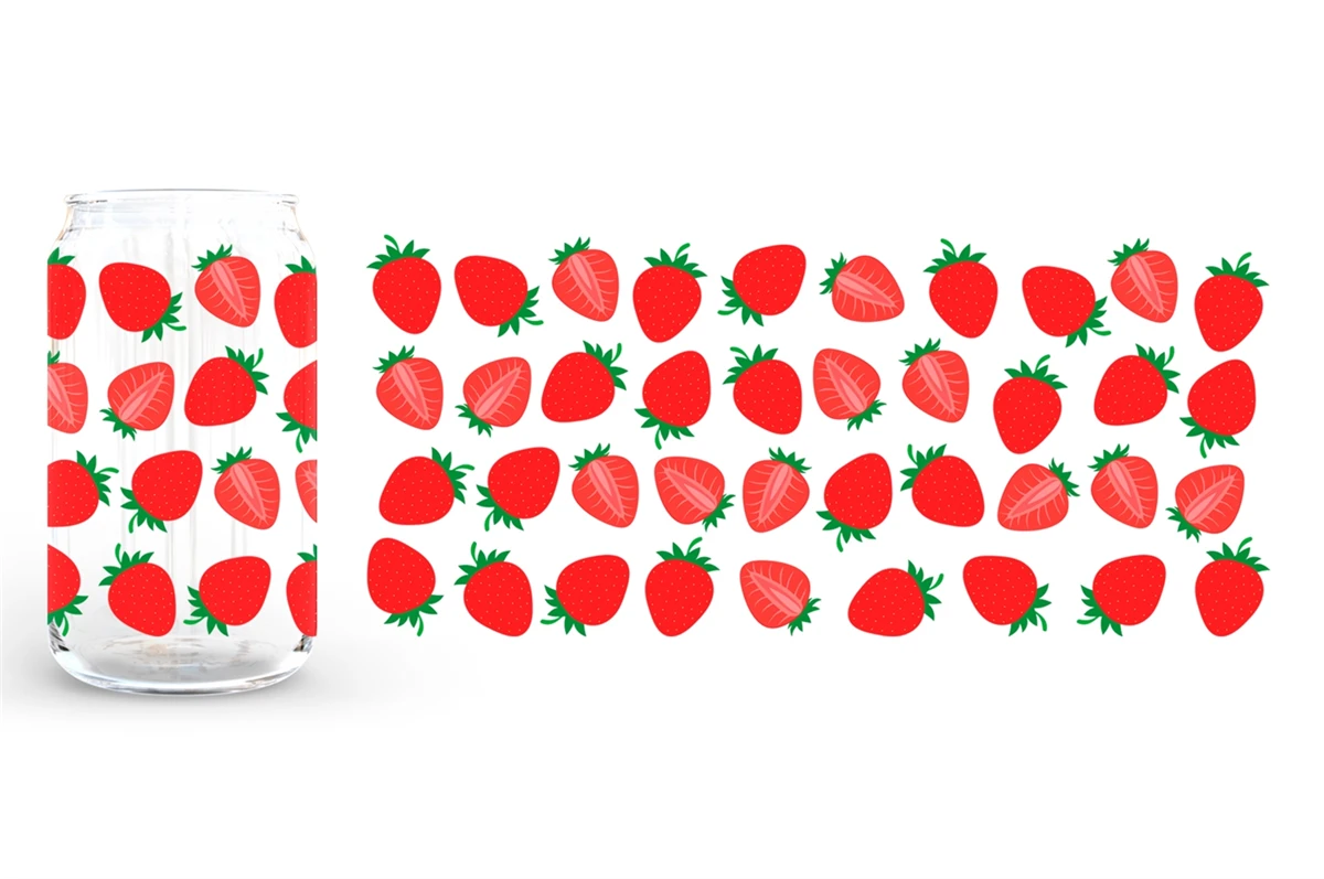 Strawberry Can Glass Wrap. Strawberry Can Glass template