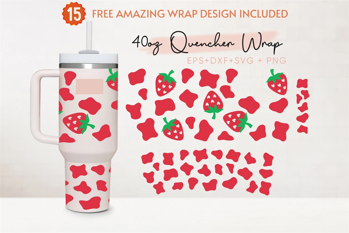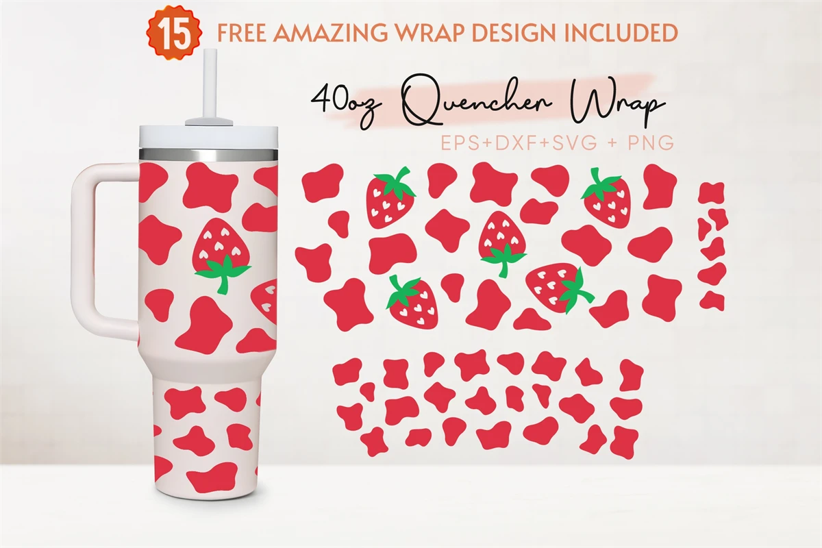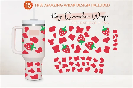 Strawberry Cow Print 40oz Quencher Tumbler, Strawberry Svg
