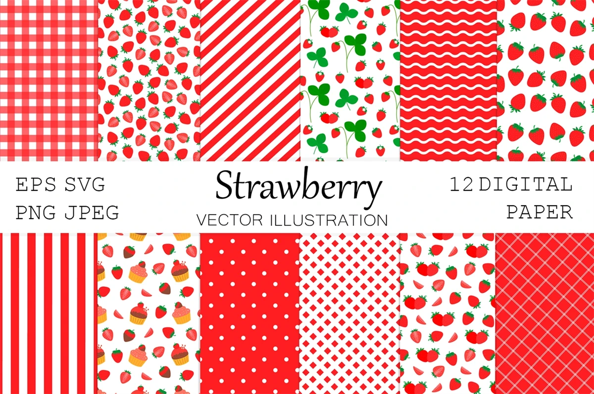 Strawberry digital paper. Red abstract digital paper