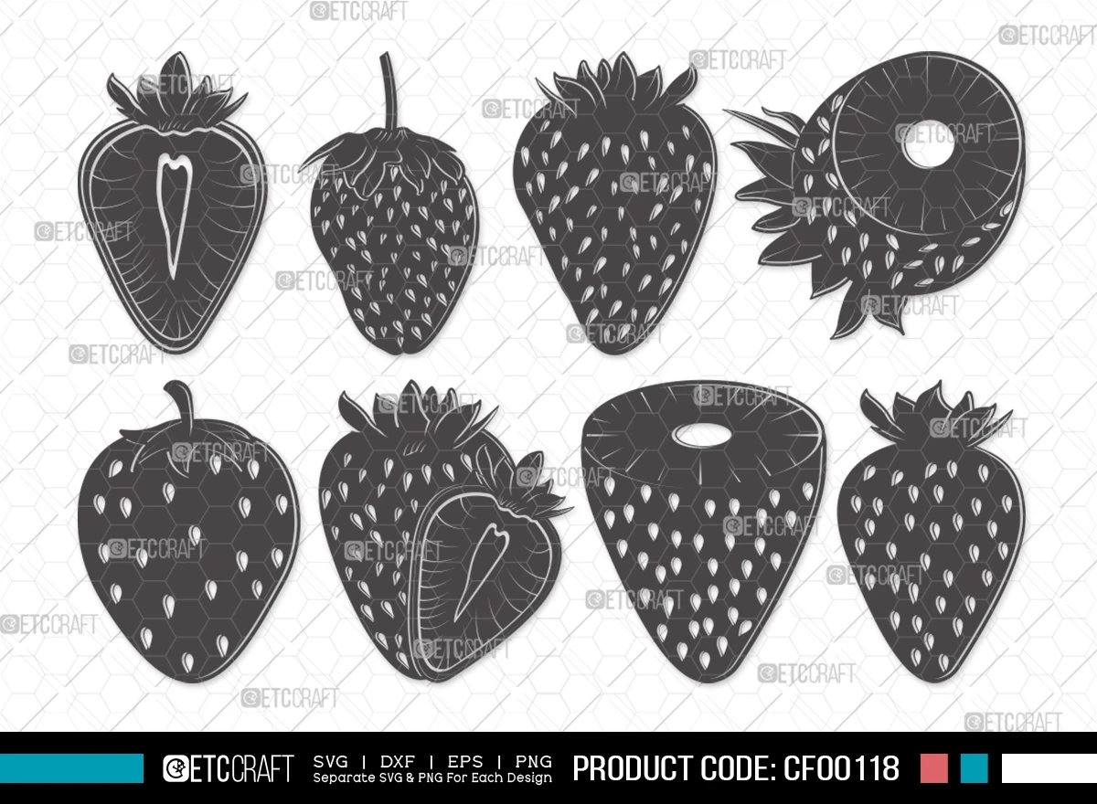 Embrace the sweetness of summer with our Strawberry Silhouette Summer Fruit Berries SVG Cut File Bundle. Let these elegant silhouettes inspire your crafting and infuse your designs with the flavors of the season. Taste the joy of creativity today!