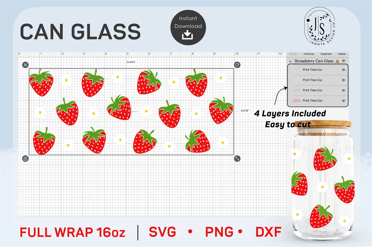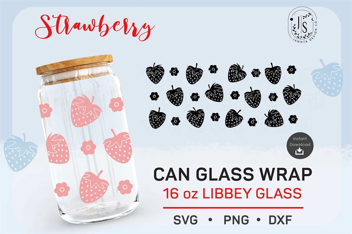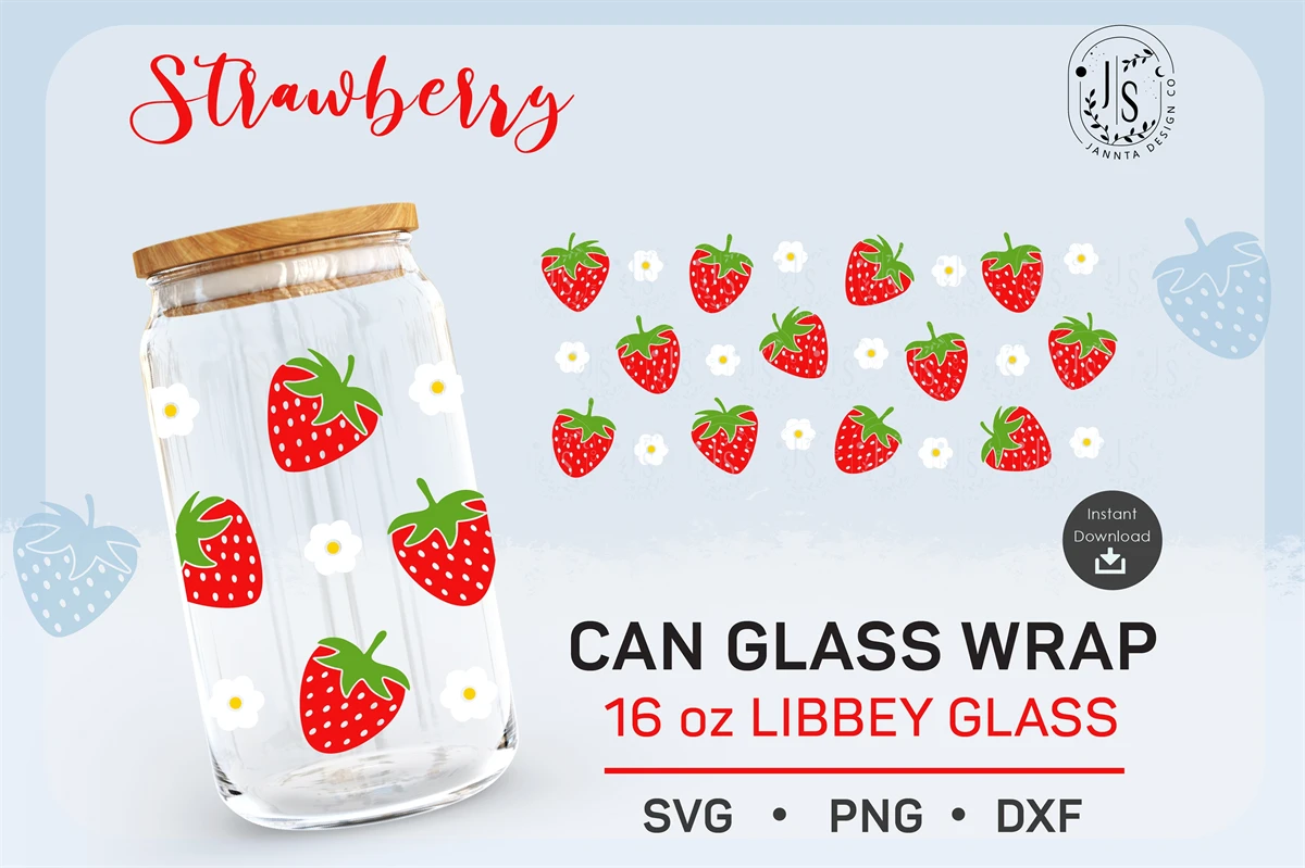 Strawberry Fruit SVG, Berry Fruits PNG, Can Glass Wrap SVG 16oz, Full Wrap for Can Glass, Seamless Wraps, PNG Digital Download Template