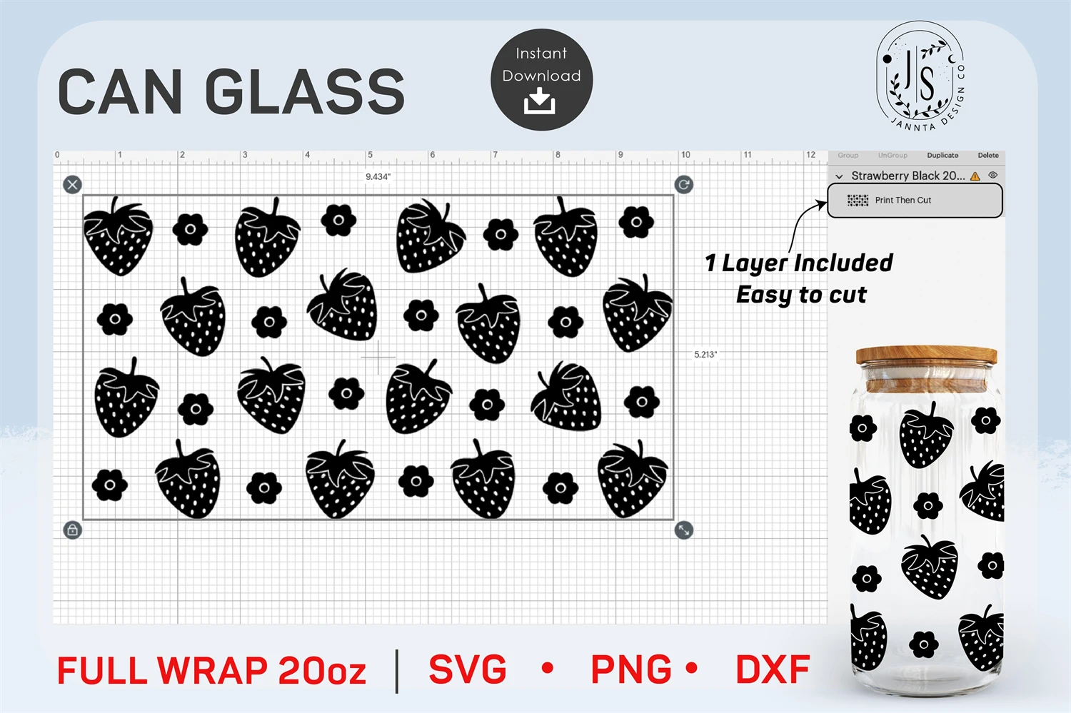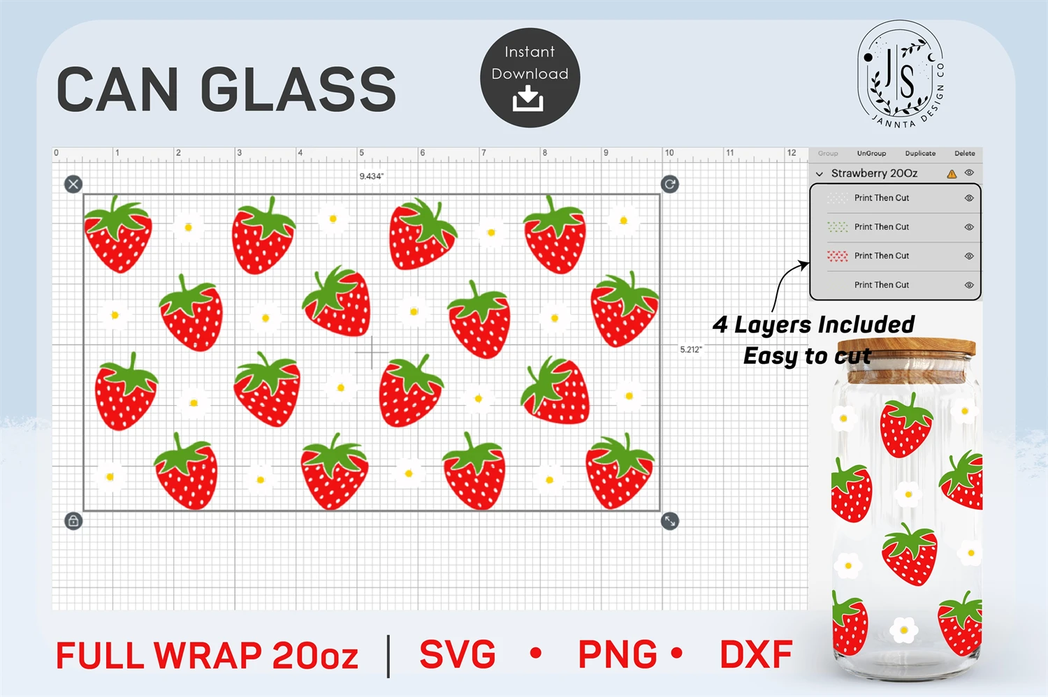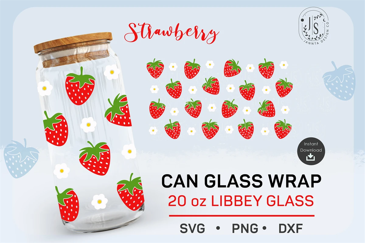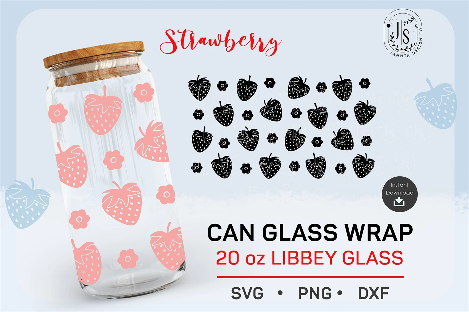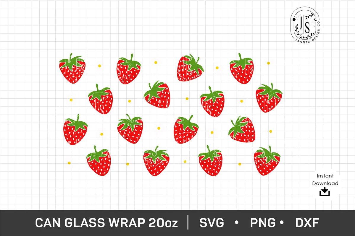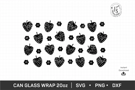 Strawberry Fruit SVG, Berry Fruits PNG, Can Glass Wrap SVG 20oz, Full Wrap for Can Glass, Seamless Wraps, PNG Digital Download Template
