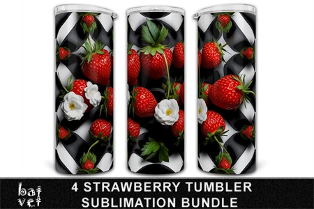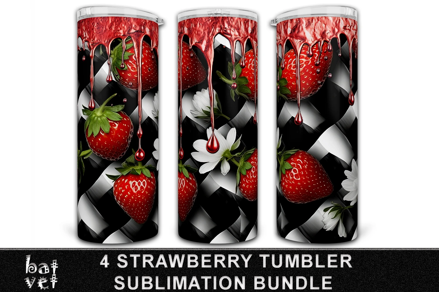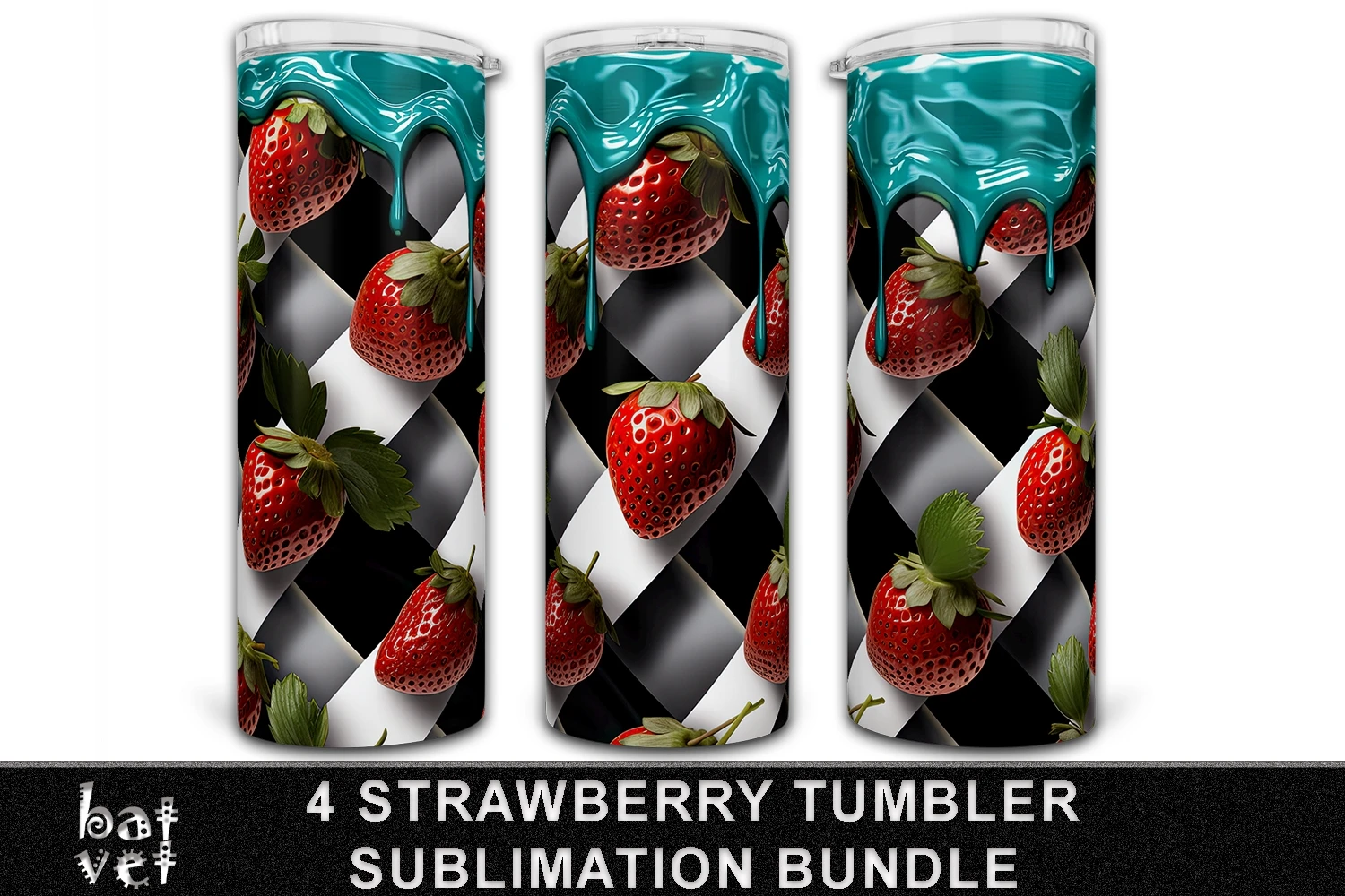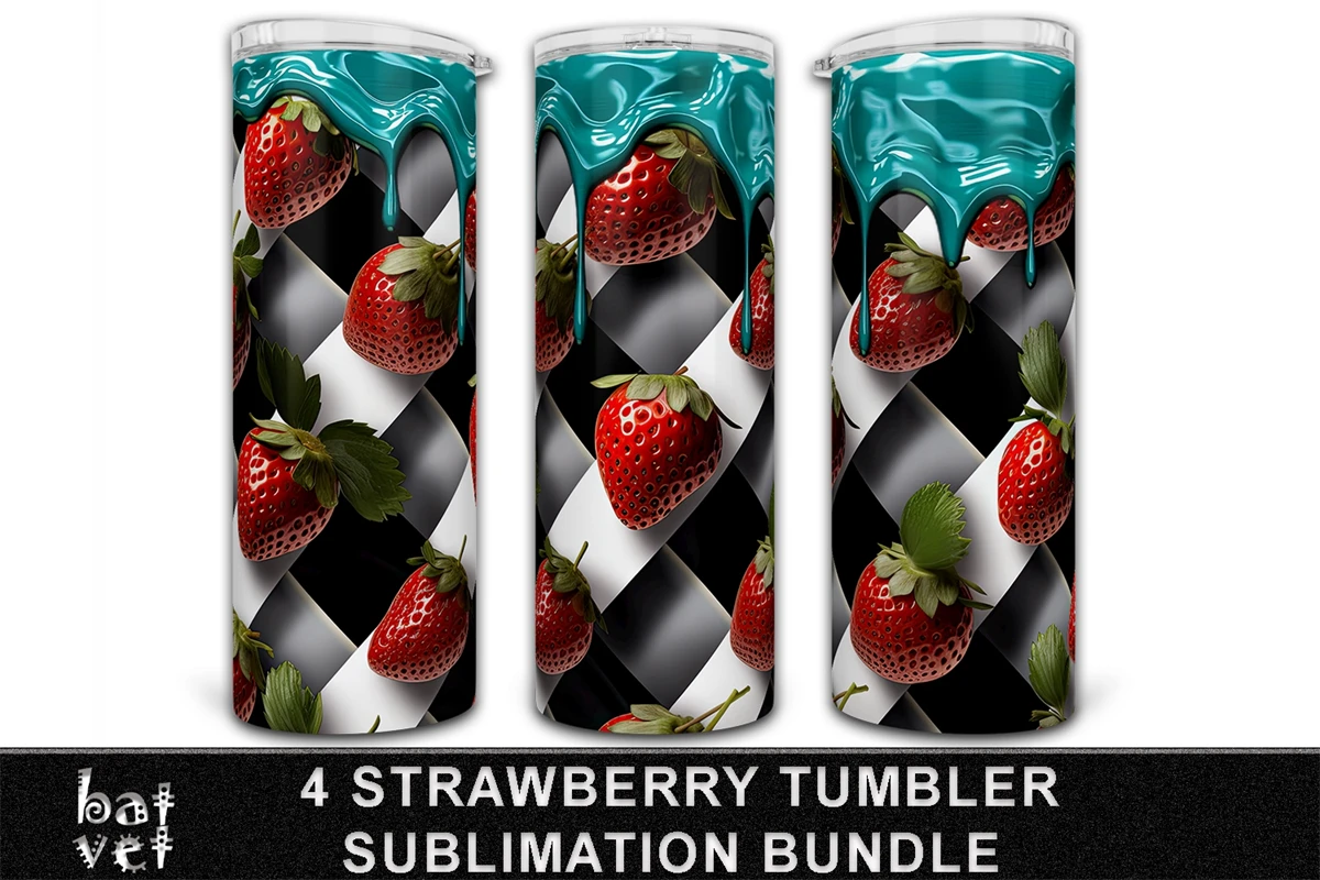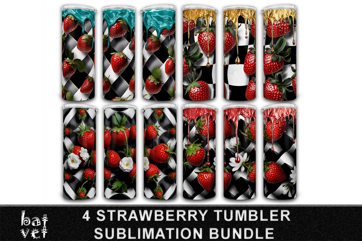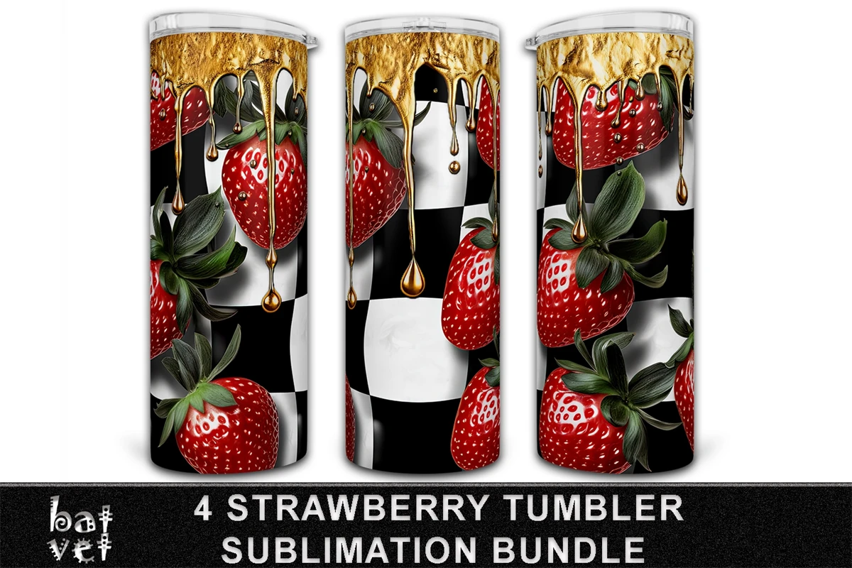 20 Oz Tumbler Wrap Print, Checkerboard, Strawberries, Gold Drip, Turquoise Drip, Red Frosting Drip Sublimation Bundle.