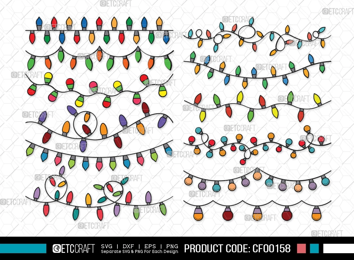Illuminate your creative projects with our String Lights Clipart Icicle Lights Strand SVG Cut File Bundle. Dive into a world of whimsical charm and festive warmth as you use these meticulously designed clipart files to add a touch of magic to your designs.
