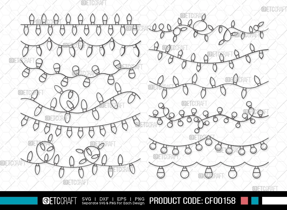 Introducing our String Lights Outline Icicle Lights Strand SVG Cut File Bundlea digital collection that brings the enchanting glow of string lights to your creative projects. Delight in the whimsical charm of these meticulously designed outline clipart files, perfect for adding a touch of magic to your designs.