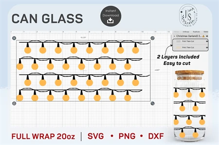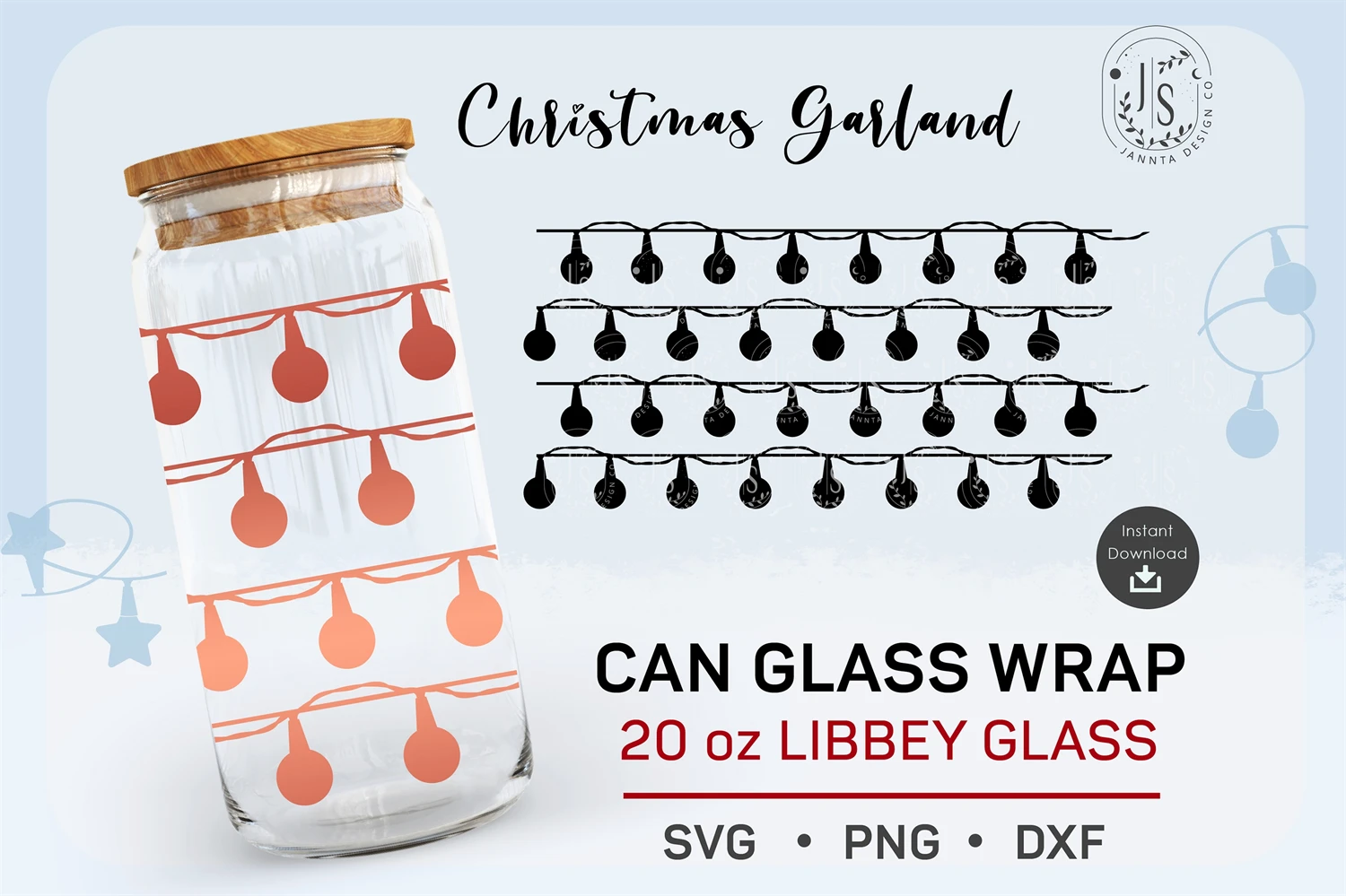 String lights svg, 16oz can glass, Christmas svg, Christmas Garland Svg, Fairy Lights, Libbey glass png, Svg Files For Cricut, SILHOUETTE, SVG, Iced Coffee Glass, SVG files for Cricut, Libbey beer glass, wrap SVG, SVG files, WRAP TEMPLATE, Full Wrap for Can Glass, Seamless Wraps, PNG Digital Download Template