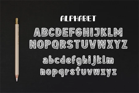 Stroke is a modern chalk font that exudes a playful and approachable vibe with its charming hand-drawn aesthetic. Its attractive design boasts clean lines and a bold presence that commands attention. Perfect for adding a touch of fun to any project, from menus and signage to social media graphics and more.