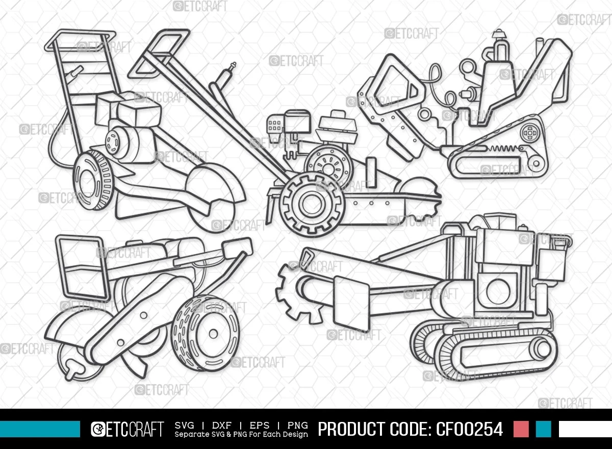 Introducing our Stump Grinder Outline and Tree Cutter Machine SVG Cut File Bundle, the ultimate resource for those seeking professional-grade graphics for tree removal and landscaping projects. This bundle provides a collection of meticulously crafted outline designs and cut files to elevate your work.