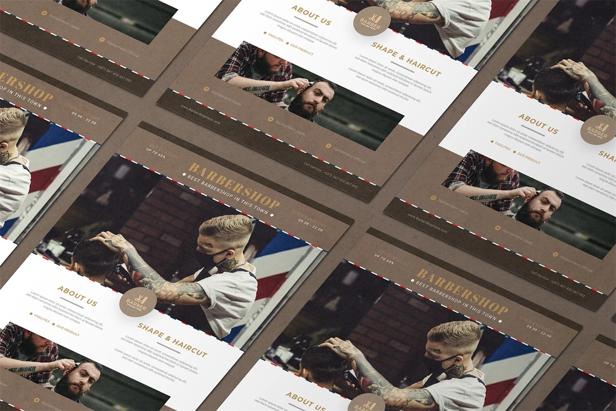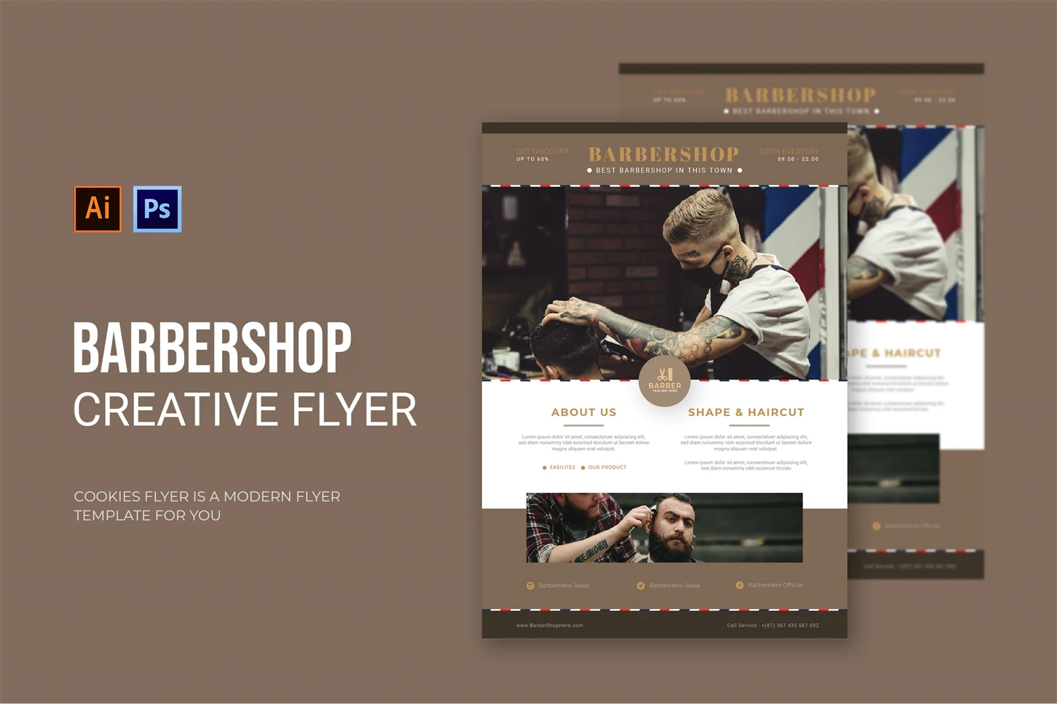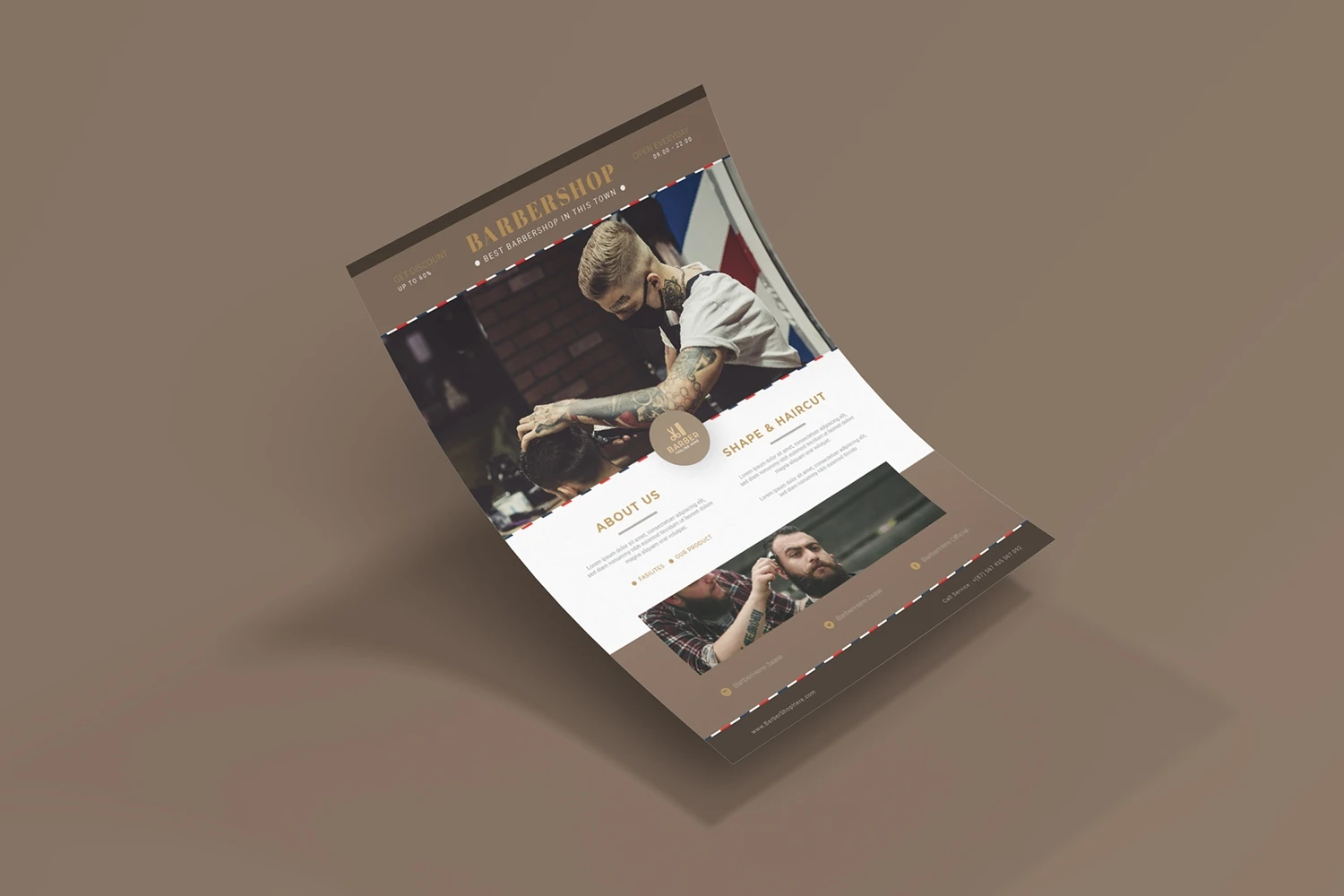Stylish Barbershop - Flyer. This Flyer template is designed for your company's business needs. very clean and elegant, and also easily edited and adjusted to your liking