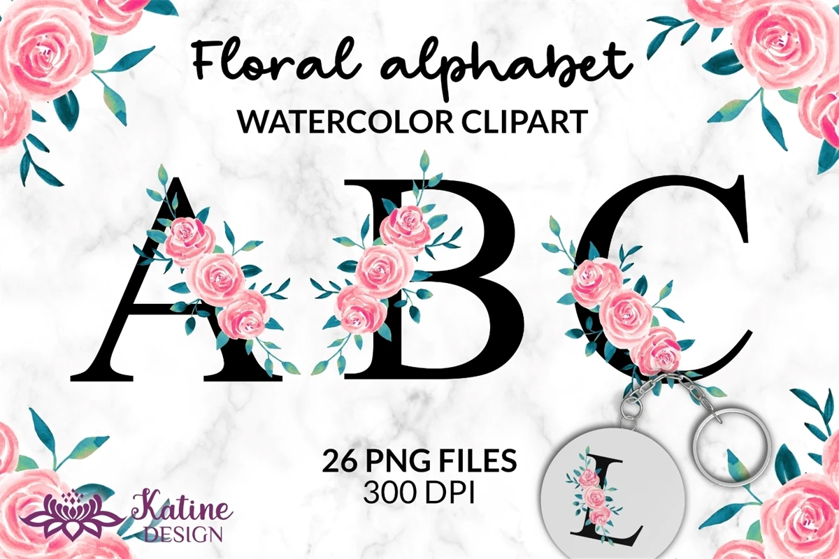 This is digital file with instant download - Sublimation Floral Alphabet Clipart