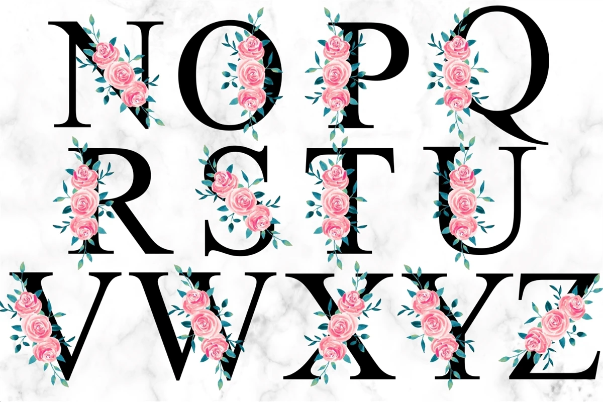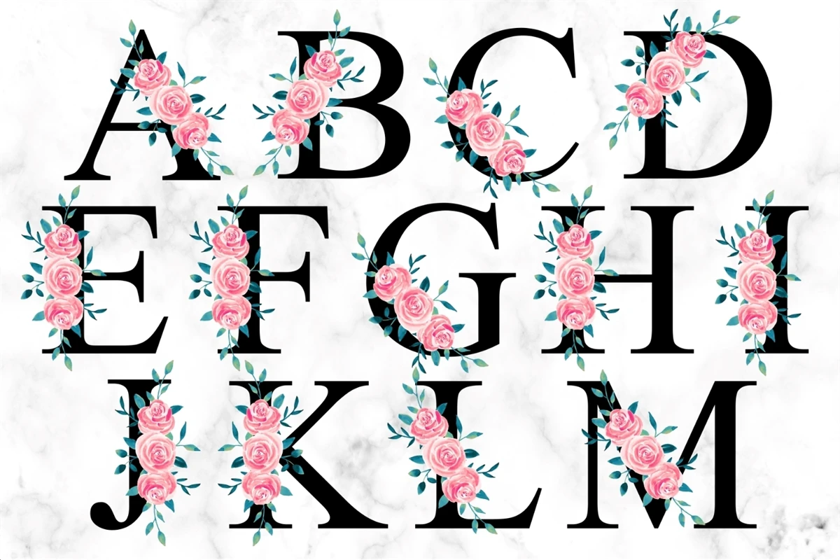 Sublimation Alphabet Floral Monogram Letters Clipart PNG