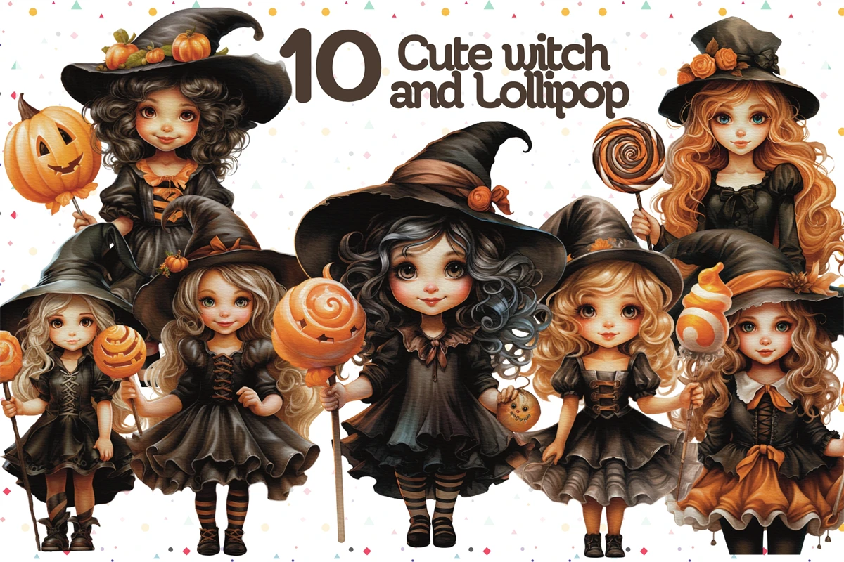Sublimation Cute Witch and Lollipop for Halloween