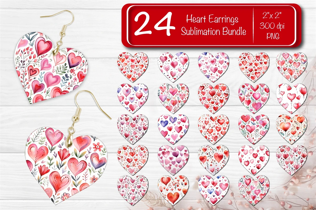Valentine earring sublimation heart earrings heart shape sublimation design with watercolor Valentine patterns hearts. Express your individuality, elevate your mood, and spread joy with these earrings. They also make a perfect gift for any occasion. Embrace your unique style!