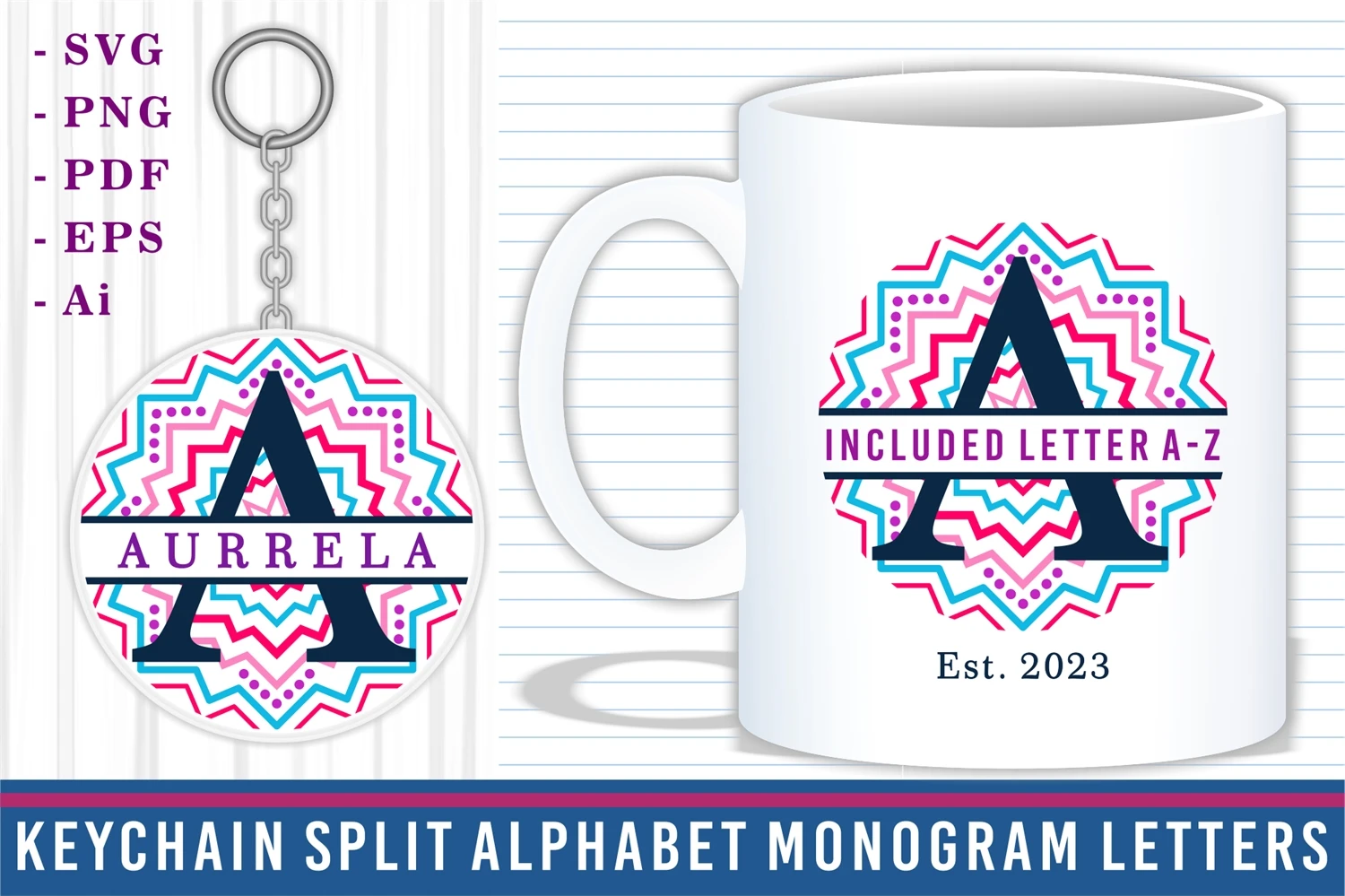 Sublimation Split Alphabet Monogram Letter SVG, Mug Designs