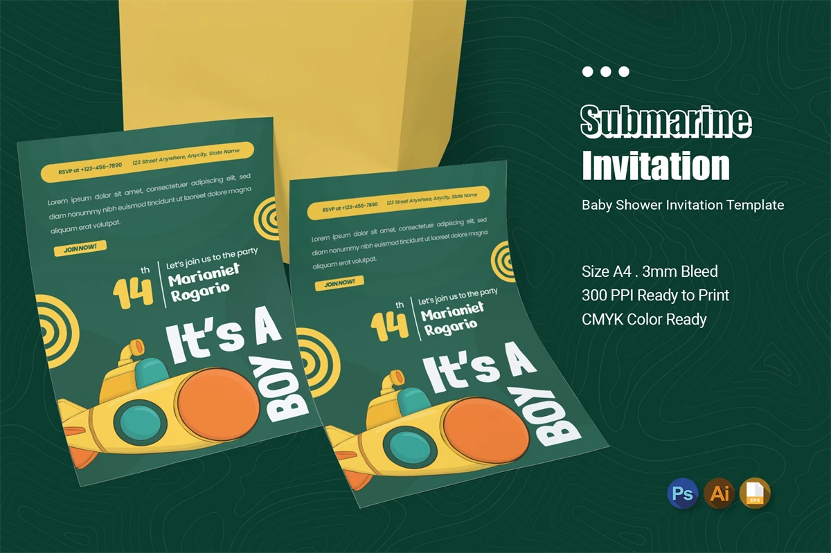 **Submarine Greenie Baby Shower Invitation**