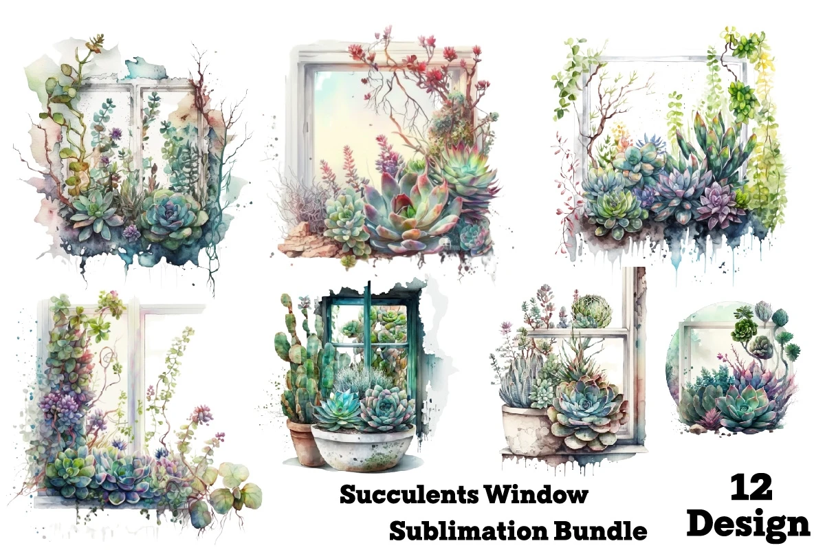 Succulents Window PNG Clipart Bundle