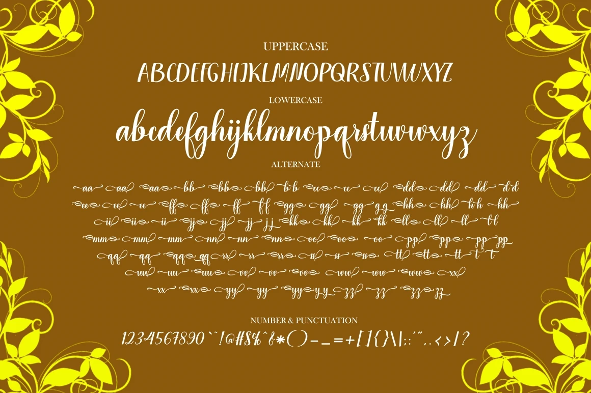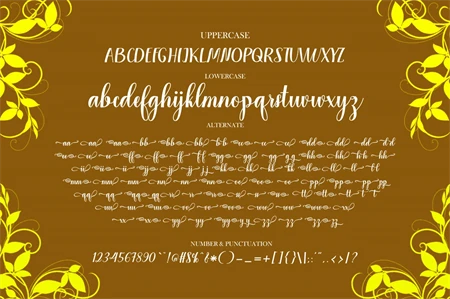 Sugako is a modern calligraphic typeface with several alternative ligatures. This font is created in a modern style with a very beautiful, elegant, very casual start and finish and fits your various design needs Perfect for logos, branding, titles, social media posts, advertisements, product packaging, product design, labels, photography, events specialty, magazines, web design, etc.