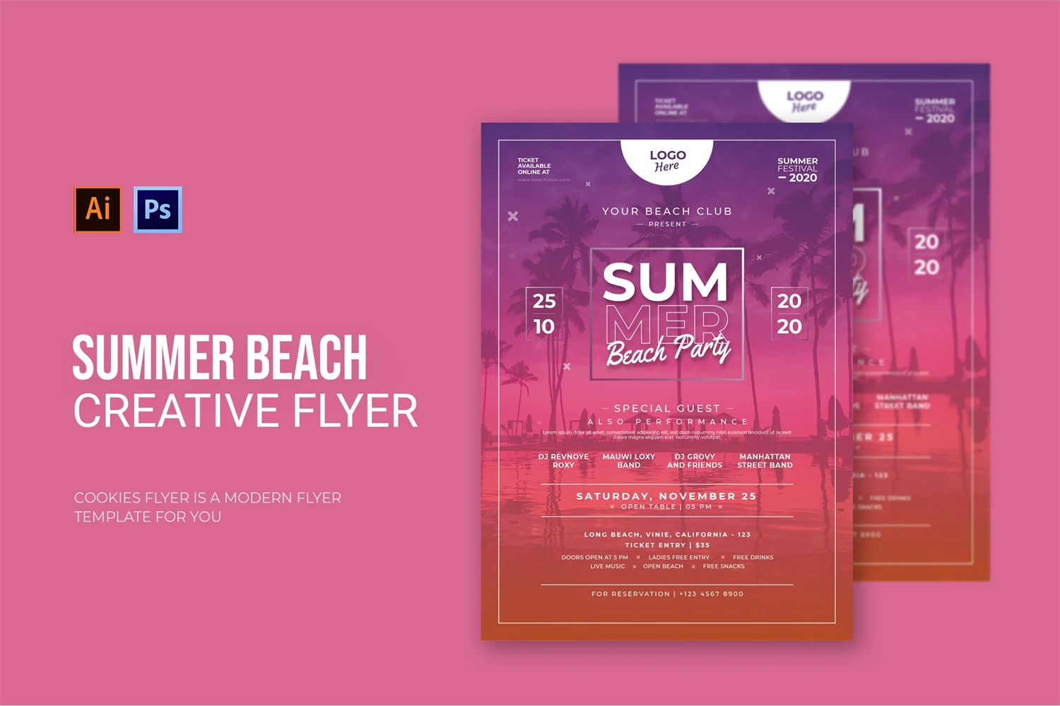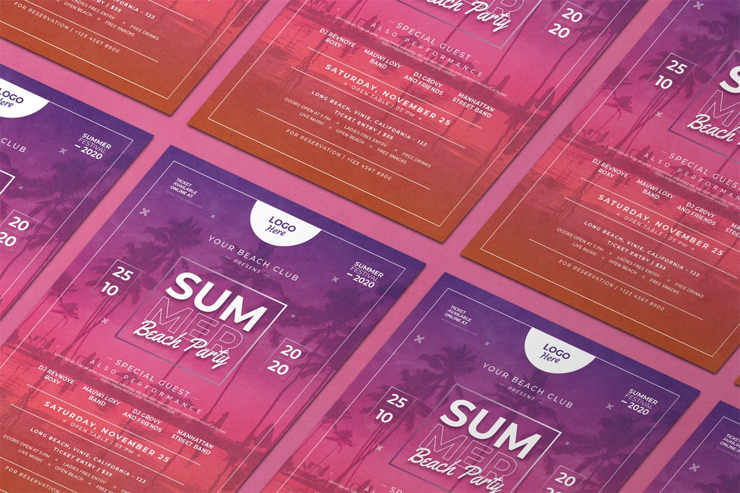 Summer Beach - Flyer. This Flyer template is designed for your company's business needs. very clean and elegant, and also easily edited and adjusted to your liking