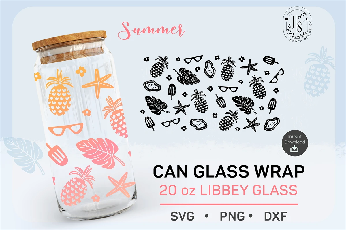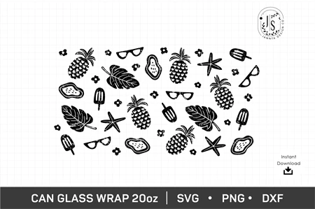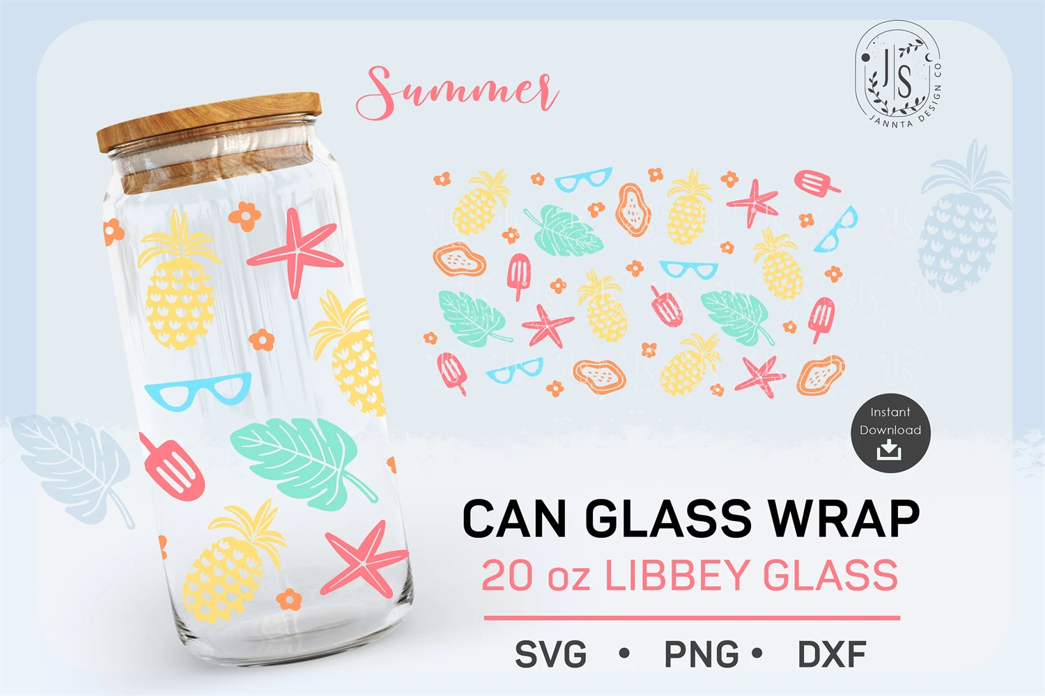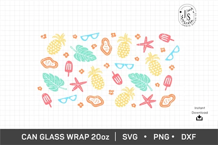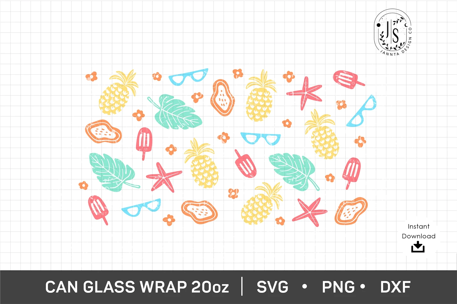 Summer Beach SVG, Summer Fruits PNG, Can Glass Wrap SVG 20oz, Full Wrap for Can Glass, Seamless Wraps, PNG Digital Download Template