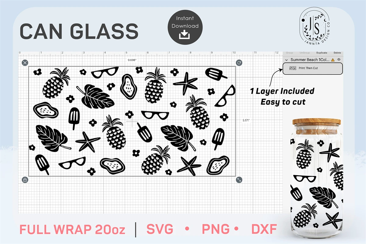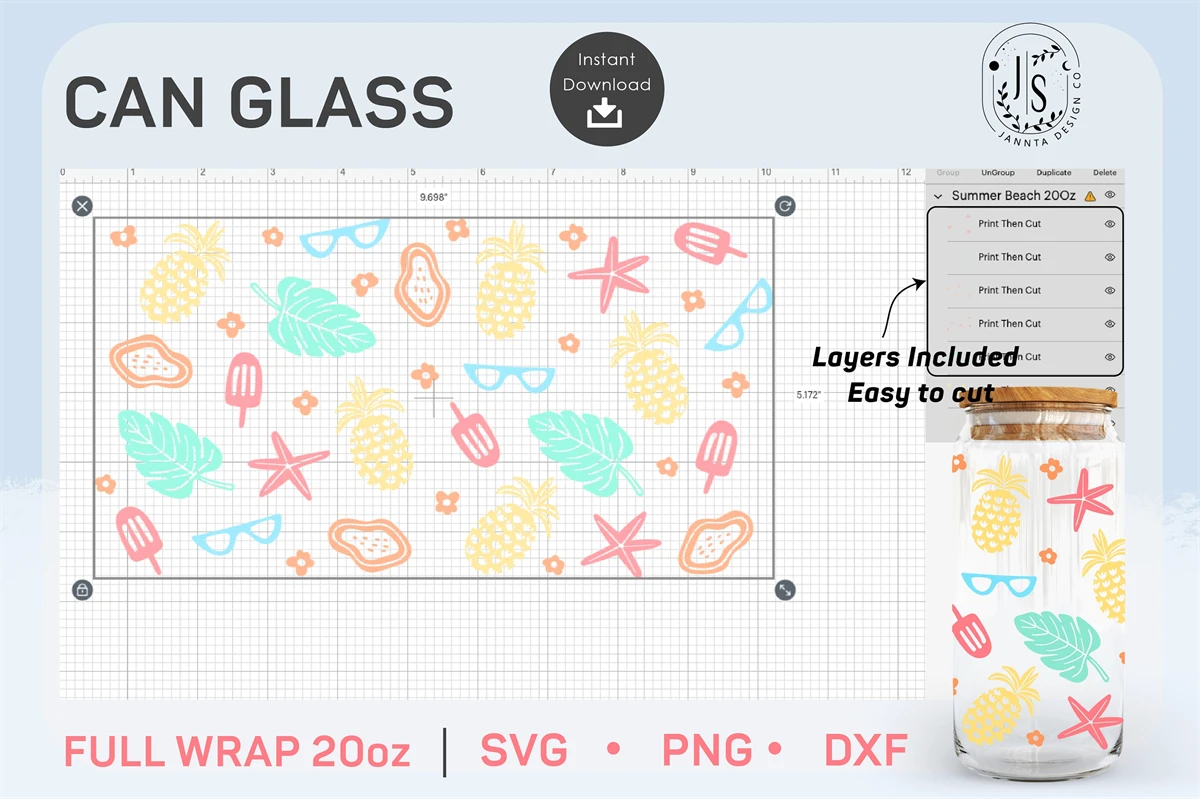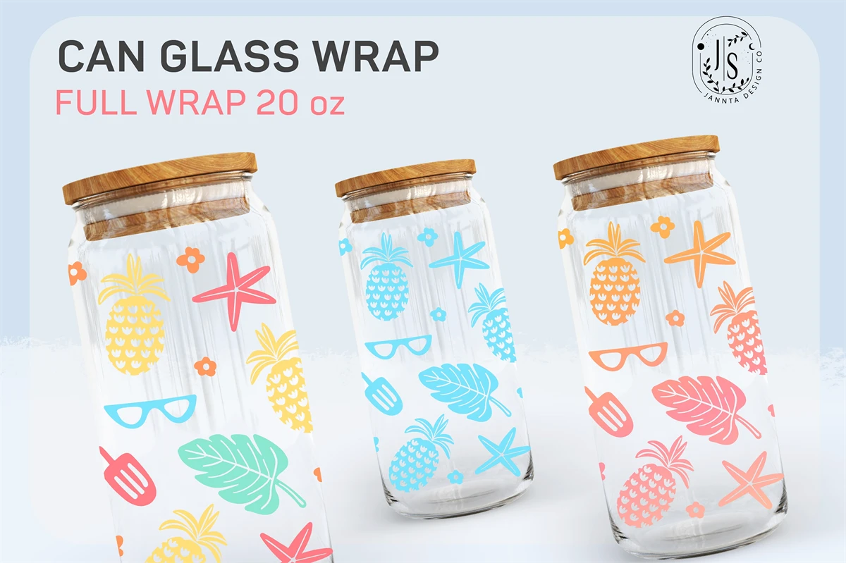Summer Beach SVG, Summer Fruits PNG, Can Glass Wrap SVG 20oz, Full Wrap for Can Glass, Seamless Wraps, PNG Digital Download Template