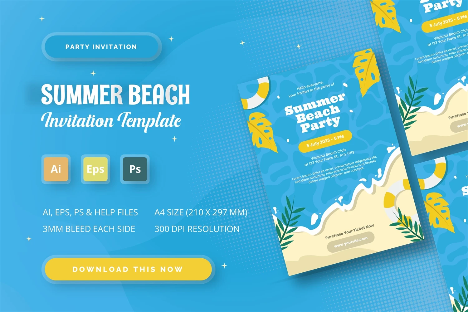 Summer Beach Party - Invitation Our Event Invitation is professionally created and can be altered to suit the needs of any company. No matter what kind of business you run or what kind of service or product you offer, we have the perfect Event Invitation for you. You can easily edit and adjust each design because each layer, such as text, images, and shapes, is well organized and highlighted.