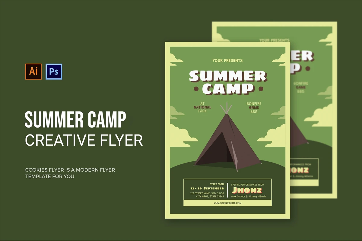 Summer Camps - Flyer. This Flyer template is designed for your company's business needs. very clean and elegant, and also easily edited and adjusted to your liking