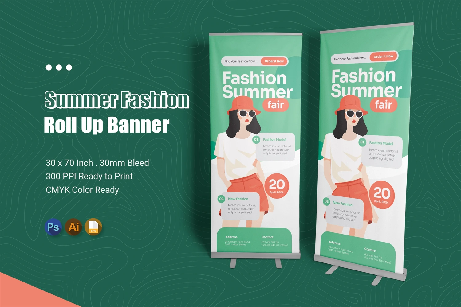 The versatile roll up banner template is very easy to use, modify and customize. Use this roll up banner and make the most of your campaign!